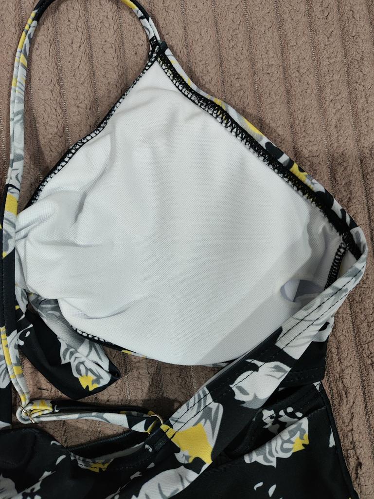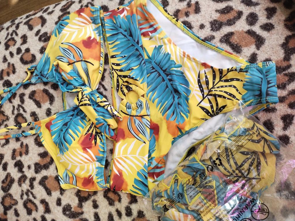 The swimsuit fits just right, but the bra doesn't look good on the chest, the straps for the bow are too long, there are no loose threads.