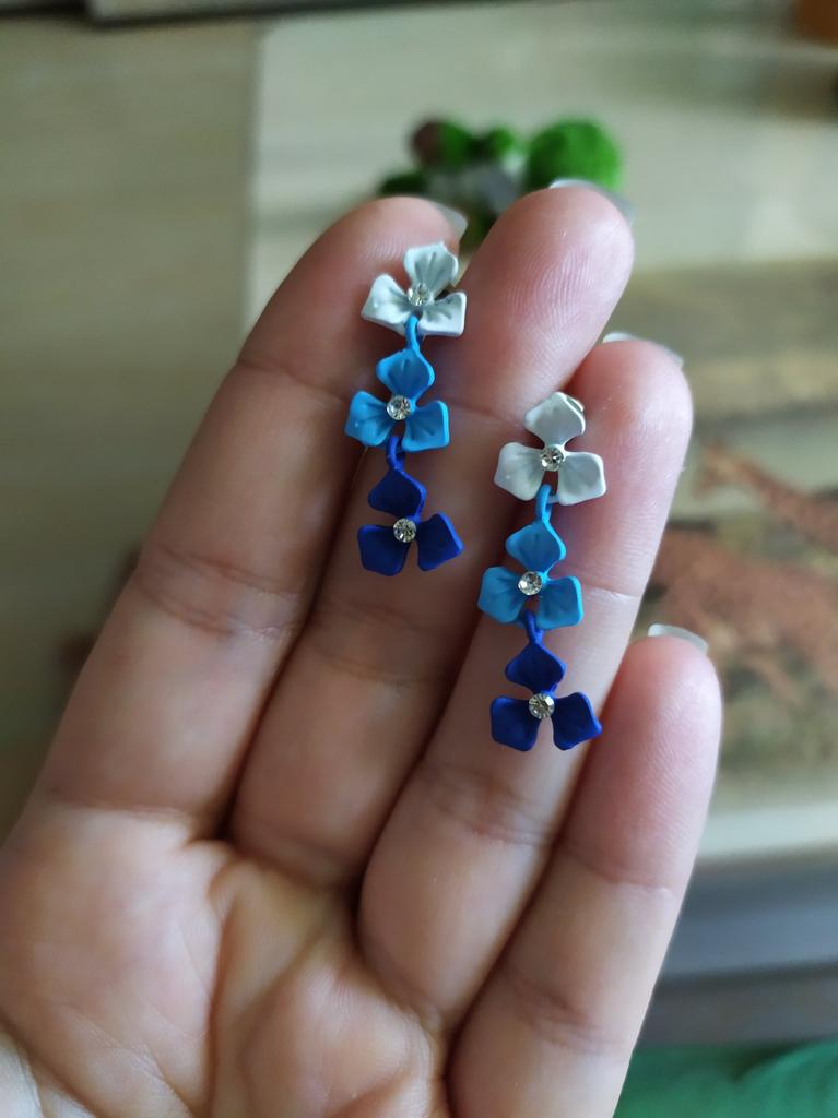 Pinkdudu New Blue Flower Design Drop Earrings Trendy Retro Fashion Temperament Alloy Earrings Jewelry Gift For Women PD1611