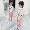 Girls Suit Summer Sports Leisure Loose and Breathable Children's Clothing Girl Short-sleeved Trousers Letter Printing All-match Two-piece Set