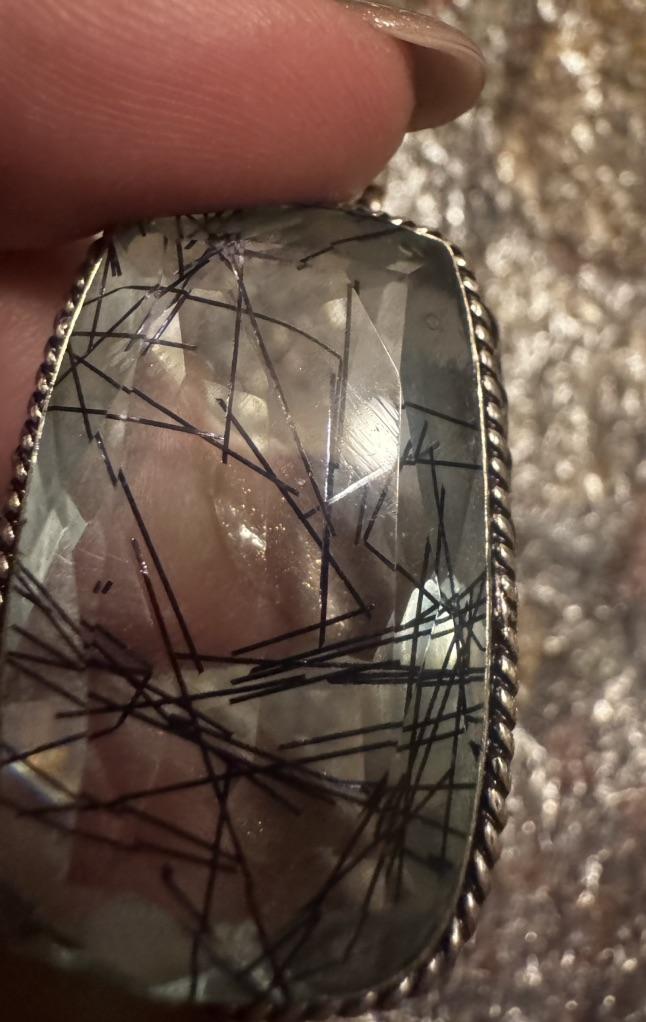 Natural Black Rutile Gemstone Handmade 925 Sterling Silver Pendant 1.89" O2B52