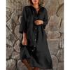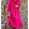 Solid Color Casual Women Plus Size Stand Collar Button Up Cotton Linen Dresses Plus Size Loose Long Shirt Dress