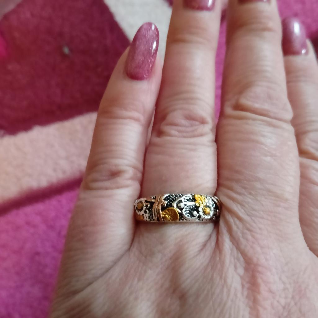 The ring in the photo is photographed in close-up, but in reality the engraving on the ring is so small that you don't immediately understand what the design on the ring is. Not impressive.