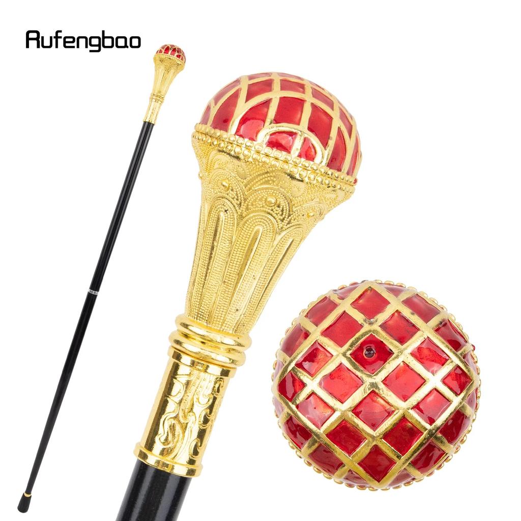 Red Ball Type Golden Walking Cane Fashion Decorative Walking Stick Gentleman Elegant Cosplay Cane Knob Crosier 93cm