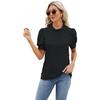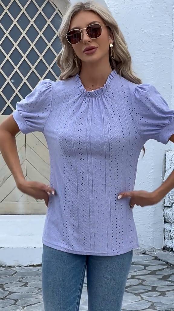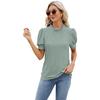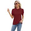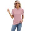 Summer Women's T-shirt Lace Neck Bubble Sleeve Loose Pleated T-shirt