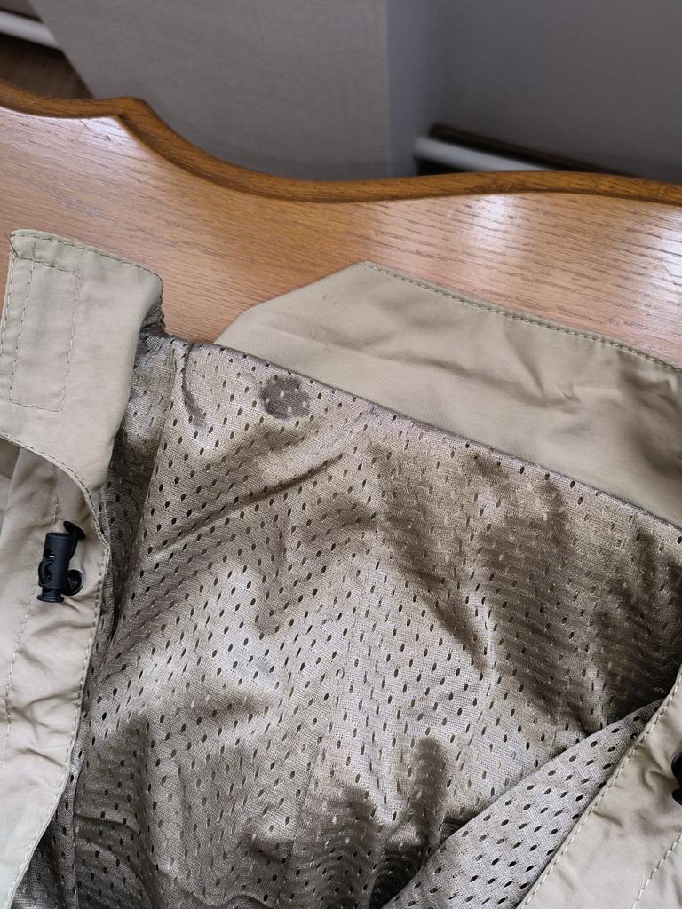 The jacket is not bad, it is a little big, the material on the top is waterproof, there is mesh inside.
