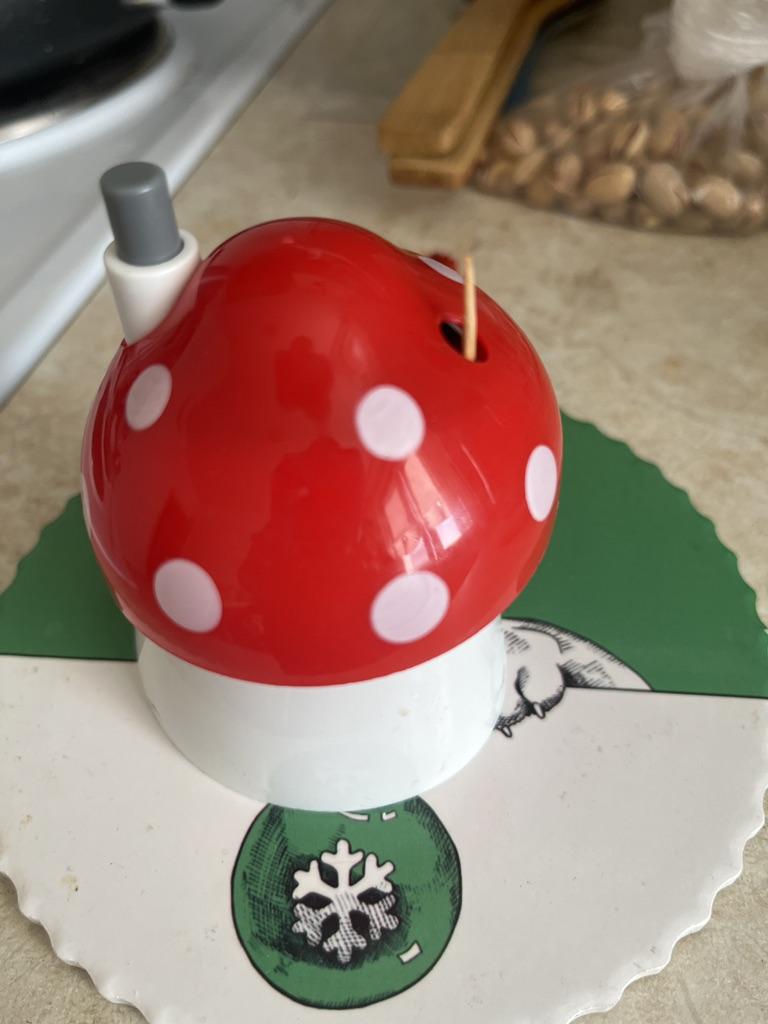 The mushroom is interesting, but the toothpick dispenser doesn't work, and it's not needed, I bought it as a mushroomπ€£π₯°π