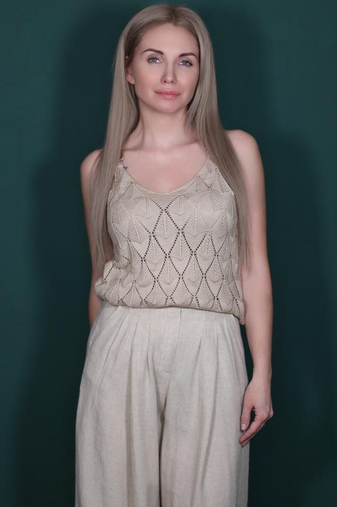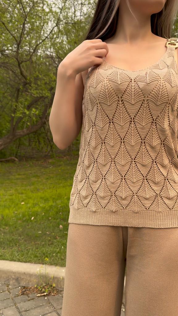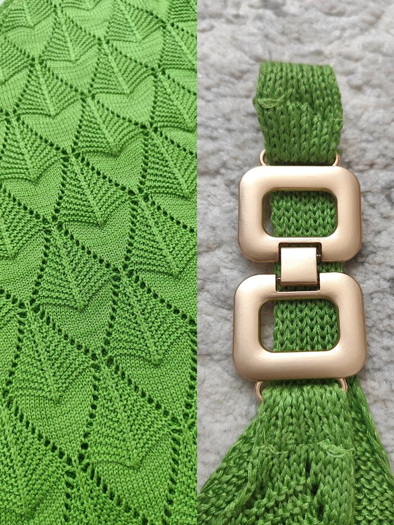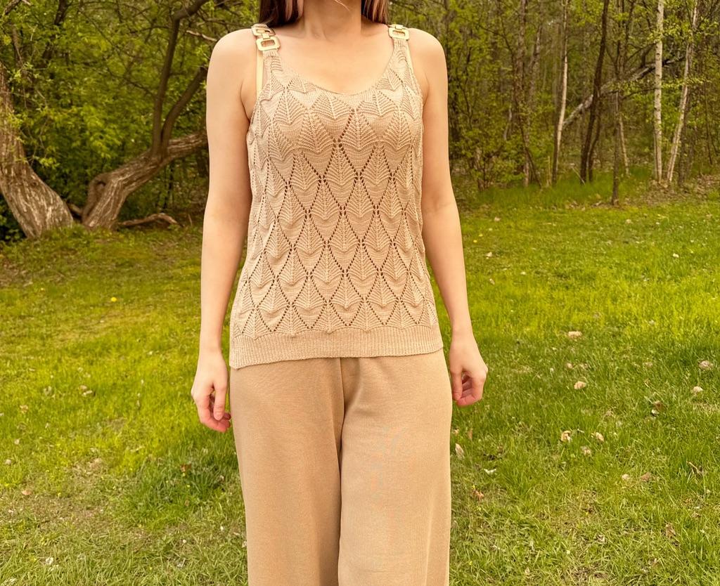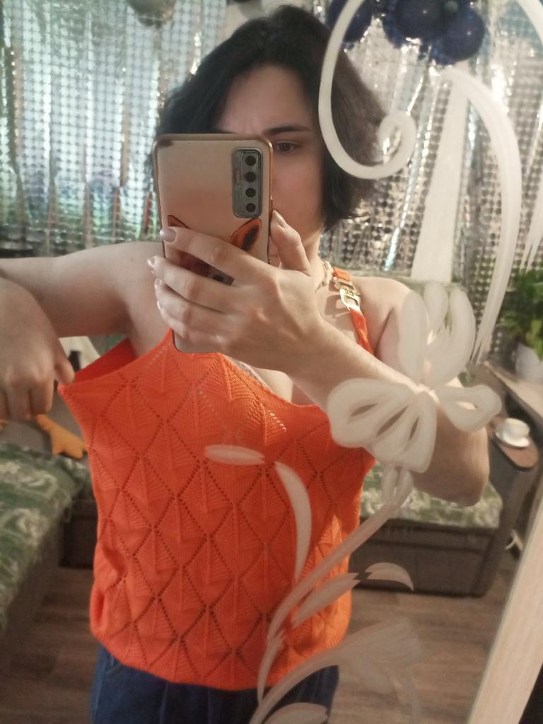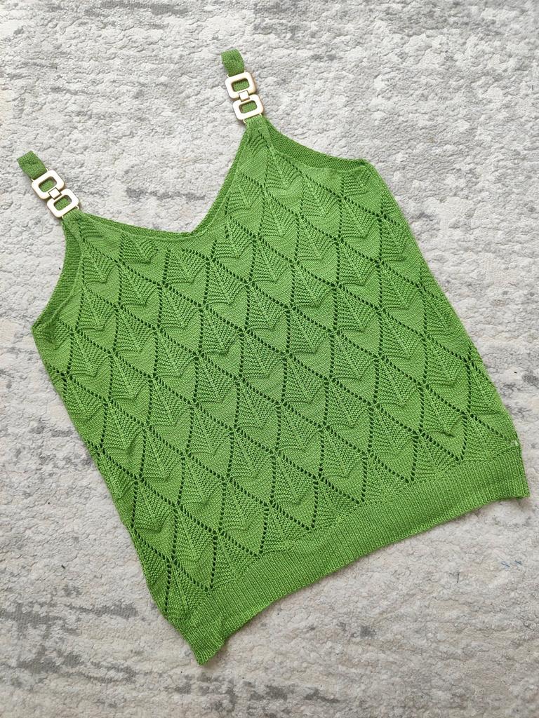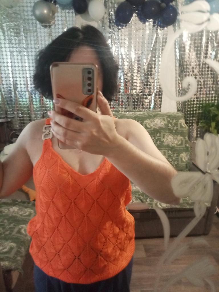 * Tank top with perforated lace and gold details* 💥𝗟𝗶𝗲𝗳𝗲𝗿𝘇𝗲𝗶𝘁 20 days 💥𝗟𝗶𝗲𝗳𝗲𝗿𝘂𝗺𝗳𝗮𝗻𝗴 The delivery includes 1 top in the corresponding color and size. The top is available in 5 different colors (white, green, khaki, orange and red) in sizes S to XL. I ordered it in size S in white. I wear size 36 to 38. I weigh 62 kg over 172 cm. Cup size 75D. Unfortunately it is still a little too big for me. 💥𝗤𝘂𝗮𝗹𝗶𝘁ä𝘁 The top is not completely opaque, which is what we wanted, thanks to the perforated lace. The top is very stretchy. The front has a different hole pattern than the back. The top is cut a little wider and falls loosely. The golden detail on the straps is a particularly elegant eye-catcher. ✨ For material composition : 100% viscose and therefore very pleasant on the skin 💥𝗙𝗮𝘇𝗶𝘁 Pretty summer top with subtle lace. I recommend wearing a skin-colored bra underneath. ....but the disadvantage is that it is slightly transparent, which is of course intended (see photos and video).. It's better to order it one or two sizes smaller.
