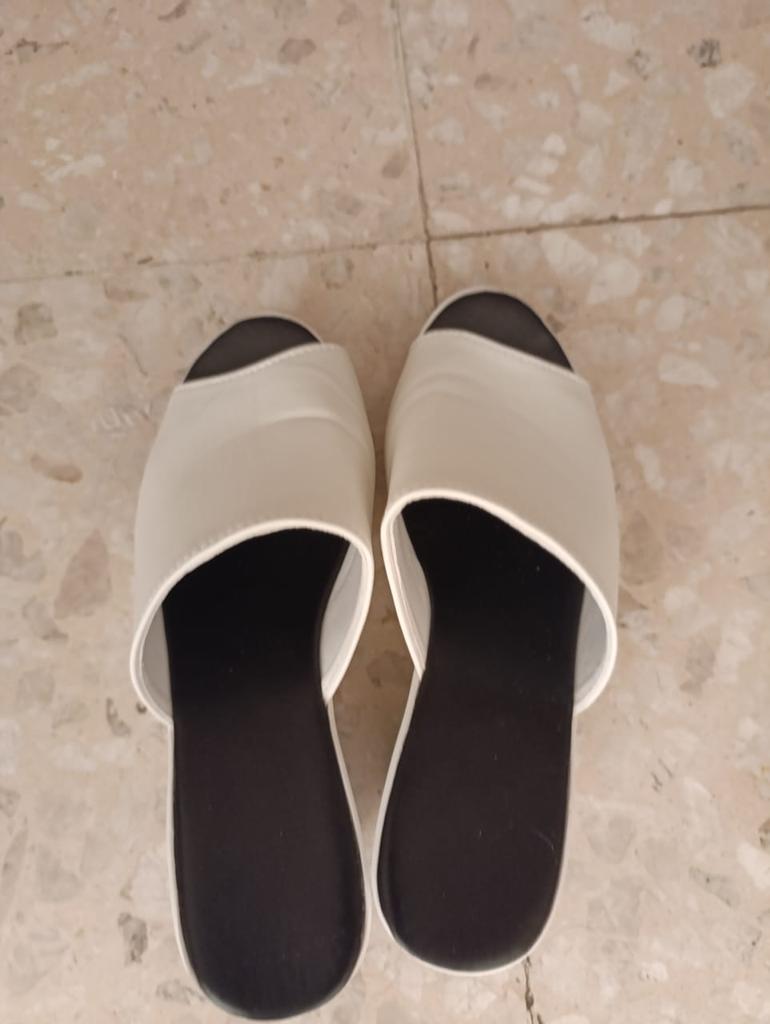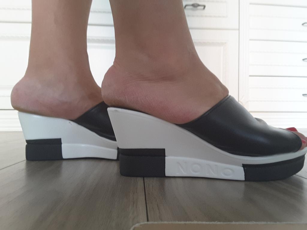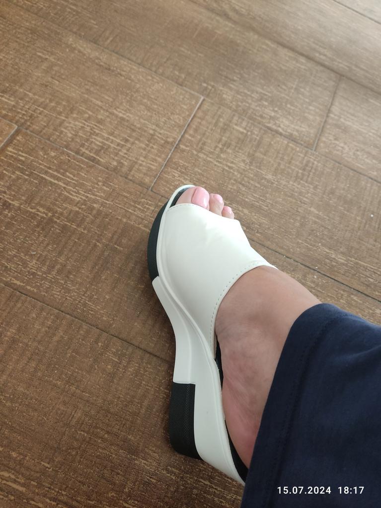 The shoes are excellent, they look neat on the foot, for size 39 I ordered 40, it fits exactly, but the sole is very slippery