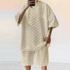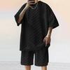 Men's Sports Suit Summer Korean High Street Jacquard Plaid T-shirt Shorts Two-piece Set Male Casual Retro Loose O-neck Top
