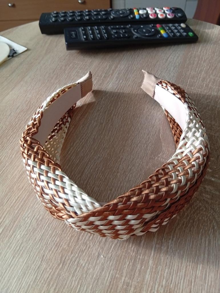 Headband made of faux straw, size is good, doesn't squeeze, color black and white matches the promo photo. During transportation, it was a bit crumpled around the edges, but straightened out quickly. Quality is excellent. Thank you!