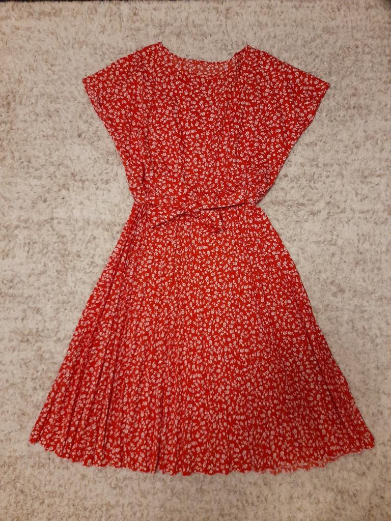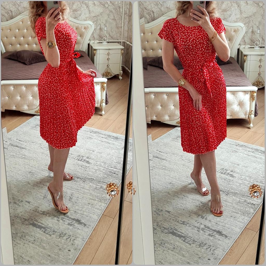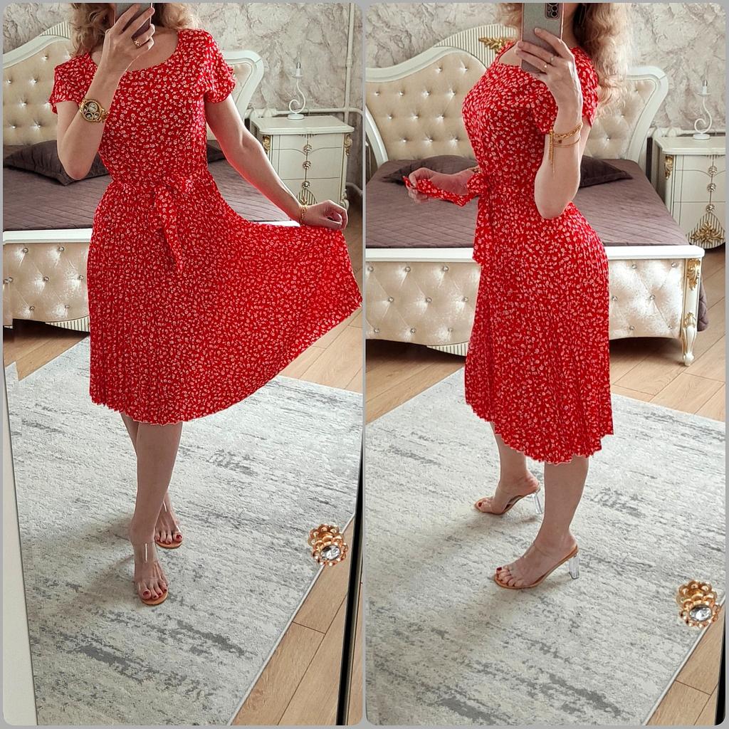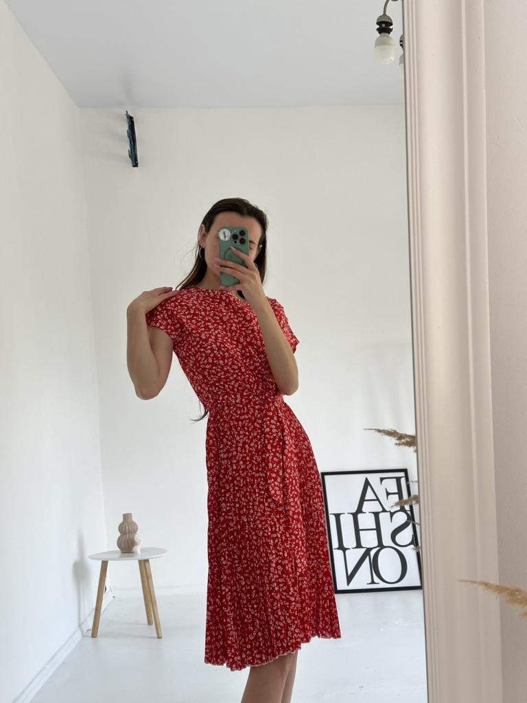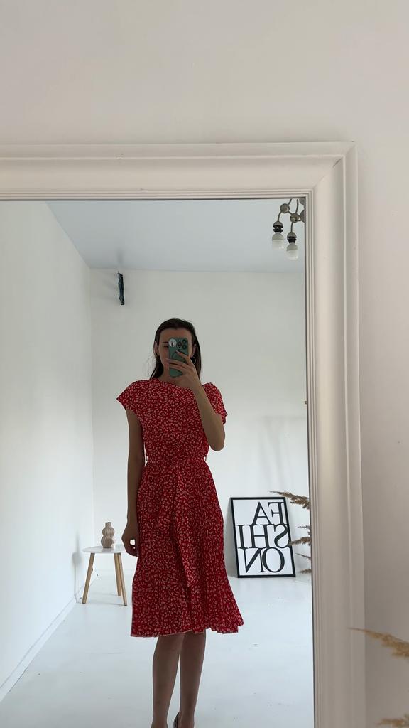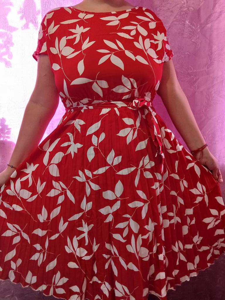* Floral dress with pleats and matching belt * ๐ฅ๐๐ถ๐ฒ๐ณ๐ฒ๐ฟ๐๐ฒ๐ถ๐ Good 3 weeks ๐ฅ๐๐ถ๐ฒ๐ณ๐ฒ๐ฟ๐๐บ๐ณ๐ฎ๐ป๐ด The delivery includes 1 dress in the corresponding color and size. The dress is available in 9 different colors and should be in sizes S to 6XL. I ordered the dress in size S in red. I wear size 36 to 38. I weigh 62 kg over 172 cm. Cup size 75D. The dress fits me very well! ๐ฅ๐ค๐๐ฎ๐น๐ถ๐รค๐ The dress is opaque, which I think is important The dress is not very stretchy, only at the waist is a stretch cuff and in the lower part the dress is cut very wide (pleated skirt). The included belt in the same color is wonderful for accentuating the waist and tying a bow at the front. The dress has a beautiful A-line fit. I particularly like the floral pattern and the pleats. The neckline is rather high. The dress goes exactly to my knees (I am 172 cm tall). For material composition : 100% Polyester... Be careful not to iron too hot ๐โผ๏ธ ๐ฅ๐๐ฎ๐๐ถ๐ Mega beautiful dress with floral pattern and pleats that has a very nice fit... forms a beautiful figure thanks to the included belt. .... I have not discovered any disadvantages. You can order the dress in its original size. It fits true to size.