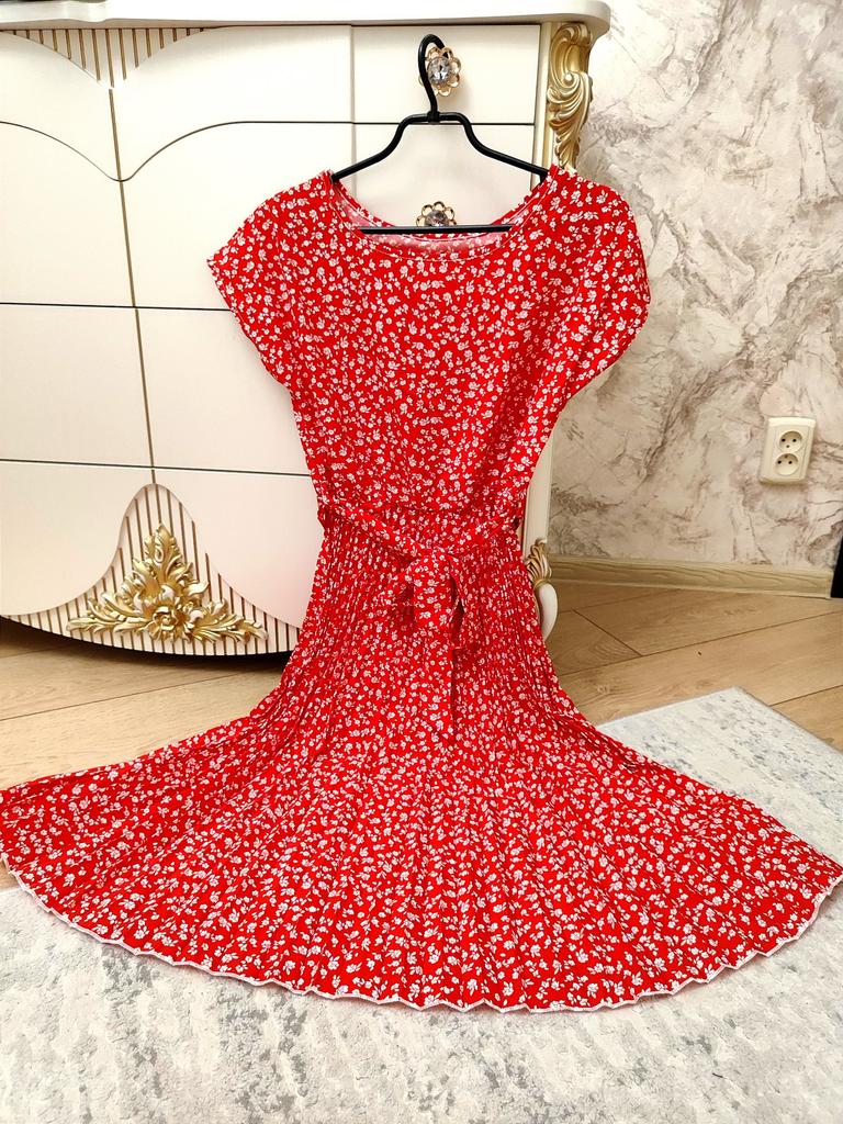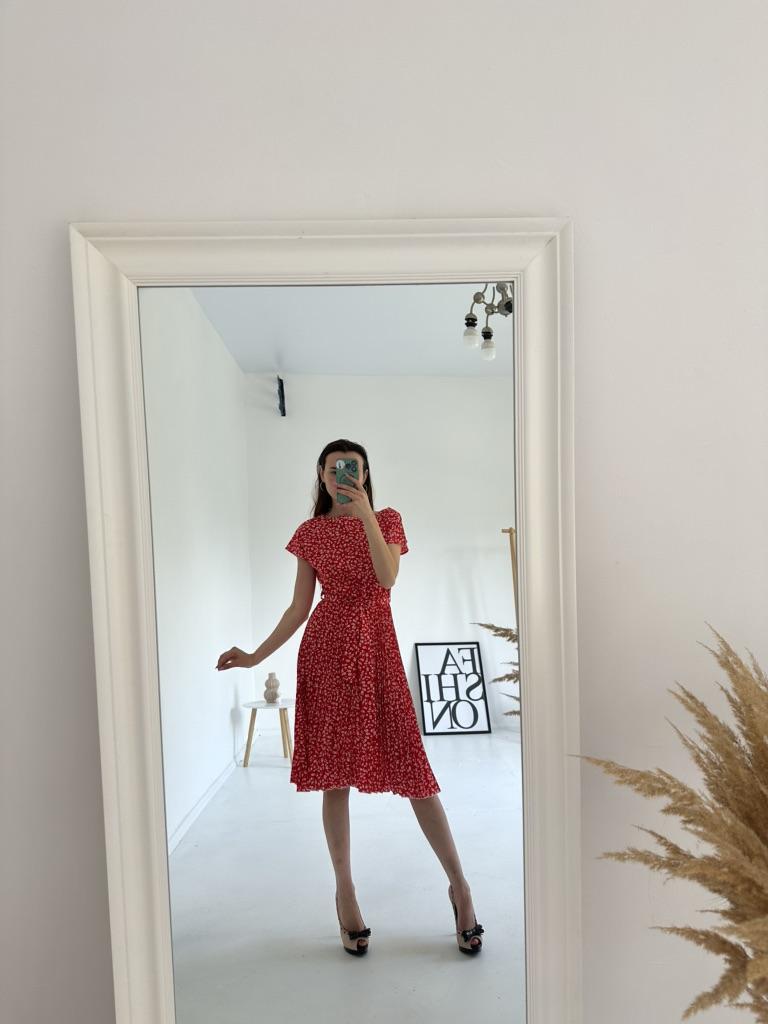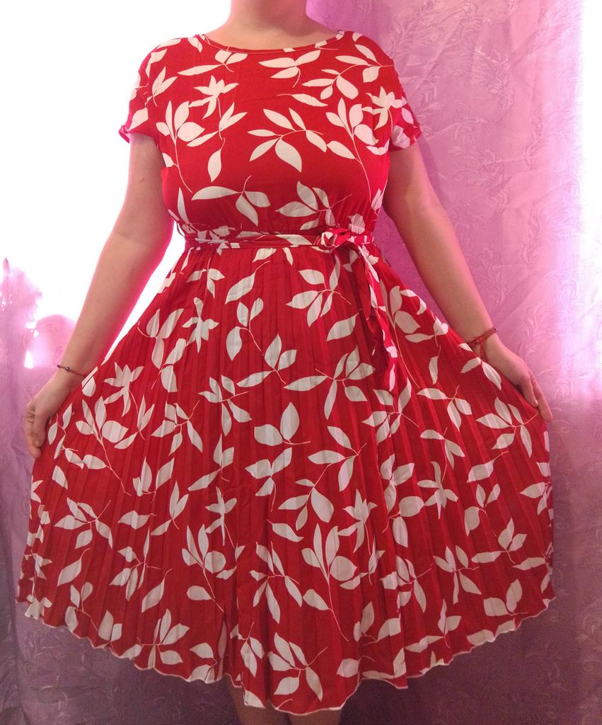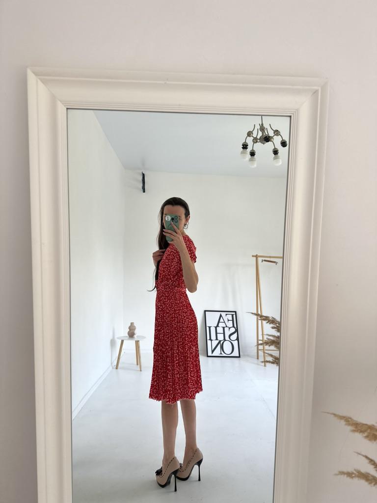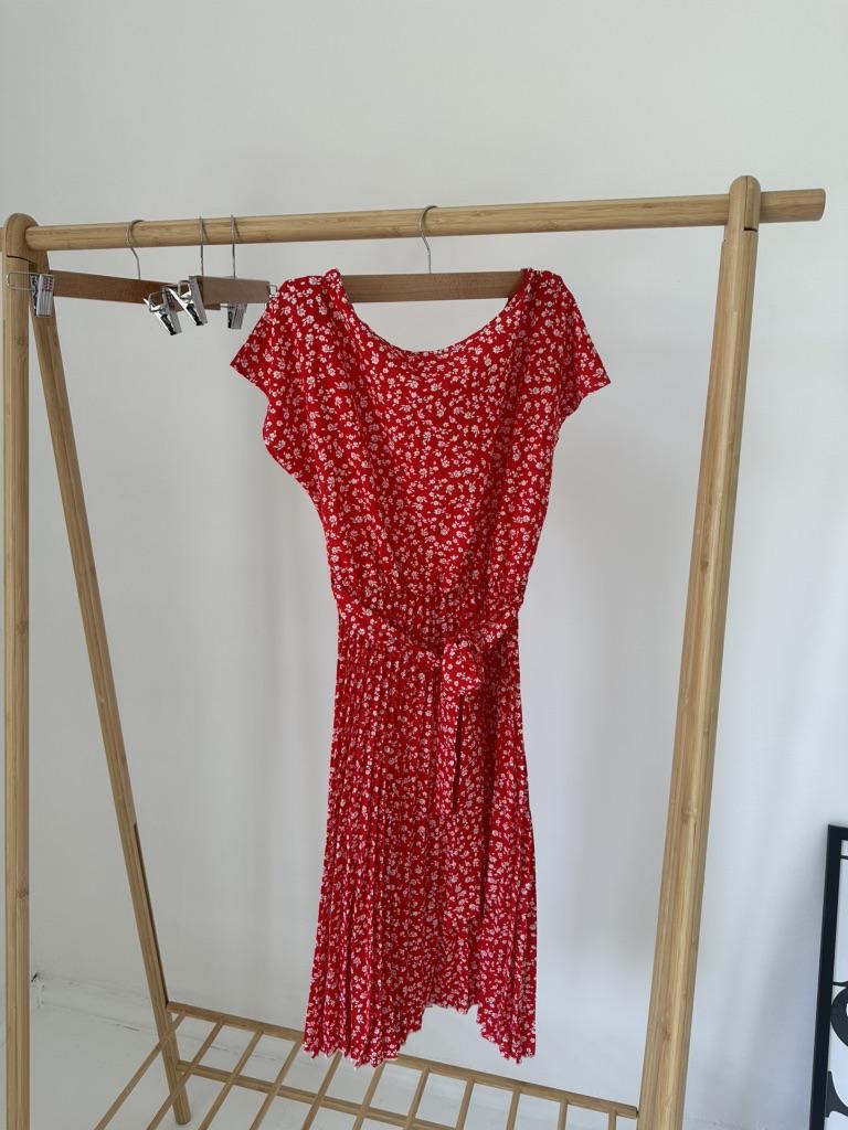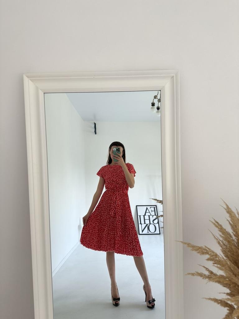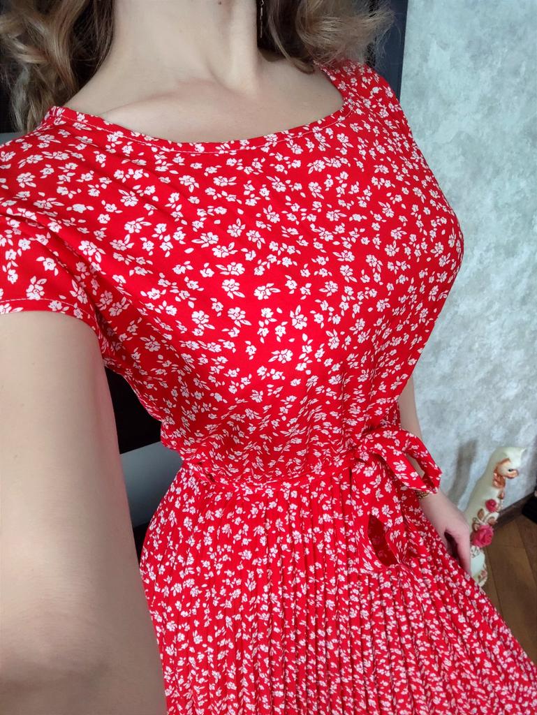 * Floral dress with pleats and matching belt * ๐ฅ๐๐ถ๐ฒ๐ณ๐ฒ๐ฟ๐๐ฒ๐ถ๐ Good 3 weeks ๐ฅ๐๐ถ๐ฒ๐ณ๐ฒ๐ฟ๐๐บ๐ณ๐ฎ๐ป๐ด The delivery includes 1 dress in the corresponding color and size. The dress is available in 9 different colors and should be in sizes S to 6XL. I ordered the dress in size S in red. I wear size 36 to 38. I weigh 62 kg over 172 cm. Cup size 75D. The dress fits me very well! ๐ฅ๐ค๐๐ฎ๐น๐ถ๐รค๐ The dress is opaque, which I think is important The dress is not very stretchy, only at the waist is a stretch cuff and in the lower part the dress is cut very wide (pleated skirt). The included belt in the same color is wonderful for accentuating the waist and tying a bow at the front. The dress has a beautiful A-line fit. I particularly like the floral pattern and the pleats. The neckline is rather high. The dress goes exactly to my knees (I am 172 cm tall). For material composition : 100% Polyester... Be careful not to iron too hot ๐โผ๏ธ ๐ฅ๐๐ฎ๐๐ถ๐ Mega beautiful dress with floral pattern and pleats that has a very nice fit... forms a beautiful figure thanks to the included belt. .... I have not discovered any disadvantages. You can order the dress in its original size. It fits true to size.