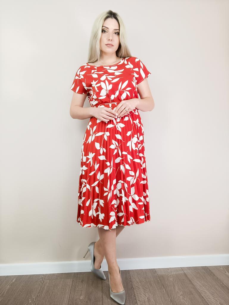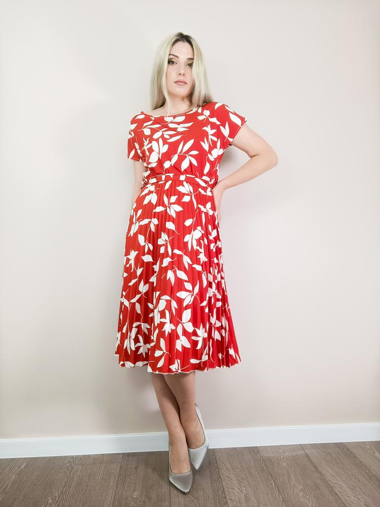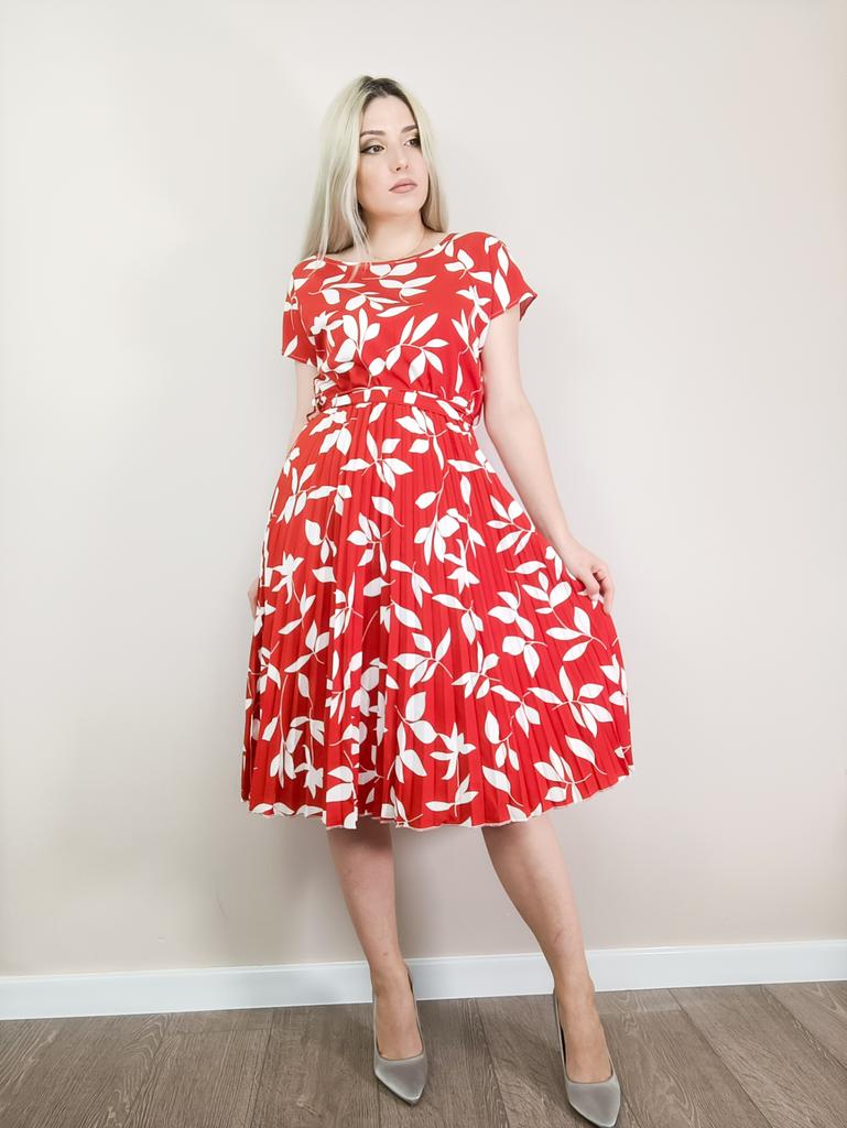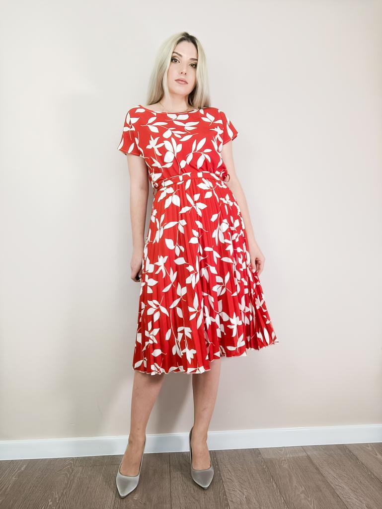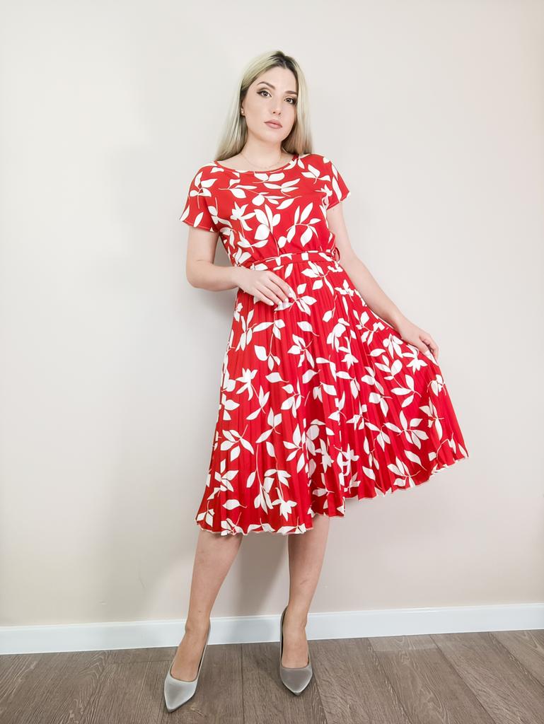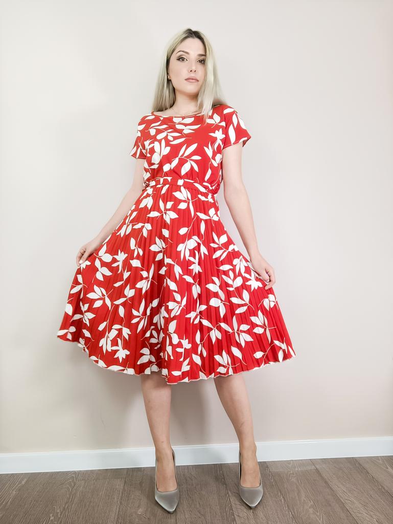 * Floral dress with pleats and matching belt * ๐ฅ๐๐ถ๐ฒ๐ณ๐ฒ๐ฟ๐๐ฒ๐ถ๐ Good 3 weeks ๐ฅ๐๐ถ๐ฒ๐ณ๐ฒ๐ฟ๐๐บ๐ณ๐ฎ๐ป๐ด The delivery includes 1 dress in the corresponding color and size. The dress is available in 9 different colors and should be in sizes S to 6XL. I ordered the dress in size S in red. I wear size 36 to 38. I weigh 62 kg over 172 cm. Cup size 75D. The dress fits me very well! ๐ฅ๐ค๐๐ฎ๐น๐ถ๐รค๐ The dress is opaque, which I think is important The dress is not very stretchy, only at the waist is a stretch cuff and in the lower part the dress is cut very wide (pleated skirt). The included belt in the same color is wonderful for accentuating the waist and tying a bow at the front. The dress has a beautiful A-line fit. I particularly like the floral pattern and the pleats. The neckline is rather high. The dress goes exactly to my knees (I am 172 cm tall). For material composition : 100% Polyester... Be careful not to iron too hot ๐โผ๏ธ ๐ฅ๐๐ฎ๐๐ถ๐ Mega beautiful dress with floral pattern and pleats that has a very nice fit... forms a beautiful figure thanks to the included belt. .... I have not discovered any disadvantages. You can order the dress in its original size. It fits true to size.