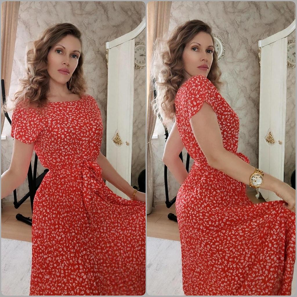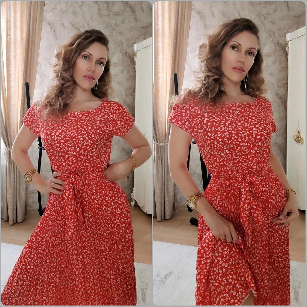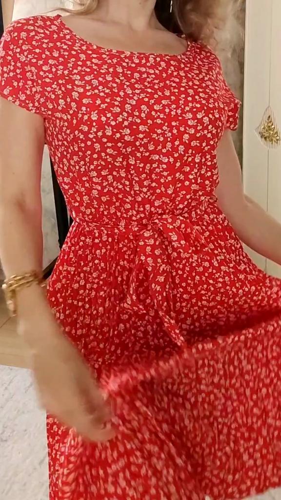 Cute dress with floral print. ๐! Delivery time ๐:13 days to Germany. โป๏ธScope of delivery: The delivery includes a dress ๐ in the appropriate size. The product is available in 9 colors. It is available in sizes from S to 6XL. I ordered the product in size S in green and the dress ๐ fits me perfectly and the color is exactly as shown. ๐ค๐ค๐ค๐ I normally wear dress size 36 (S). I weigh 55kg and am 167cm tall. The dress is true to size. ๐Quality โป๏ธ: The dress is light and swings beautifully. Beautiful pleats!!! โ ๏ธ๐The fabric is very pleasant on the skin. The product has a small O-neck, which I really like. The elastic at the waist accentuates the figure. The dress ๐is opaque. , with a matching belt. Perfect!๐๐๐๐It's great for spring and summer. I liked the pattern of the dress best, this beautiful floral print. I also think the wicked cap sleeves on the shoulders are unusual and beautiful.๐๐๐ The dress has a lovely A-line fit. โ ๏ธMaterial composition: 100% polyester. But the material is very comfortable on the skin. The dress reaches about mid-calf on me. โณ๏ธSummary โณ๏ธ: A beautiful short-sleeved dress ๐with the belt that you can order in your normal size. I would very much recommend the product. 5 stars ๐๐๐๐! Thank you Joom and the seller!!!๐ค๐ค๐ค๐๐And thank you for a little gift for the hairband ๐๐๐