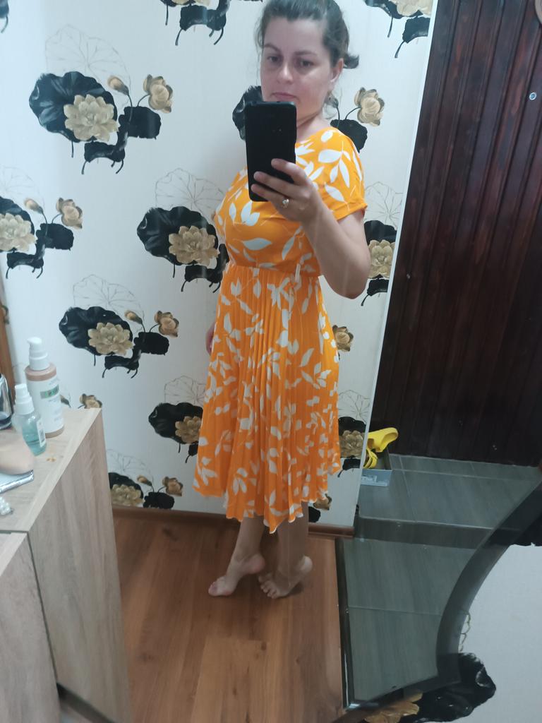 Wonderful dress. The size fits my 52-54. I'm very pleased. Thanks Joom.