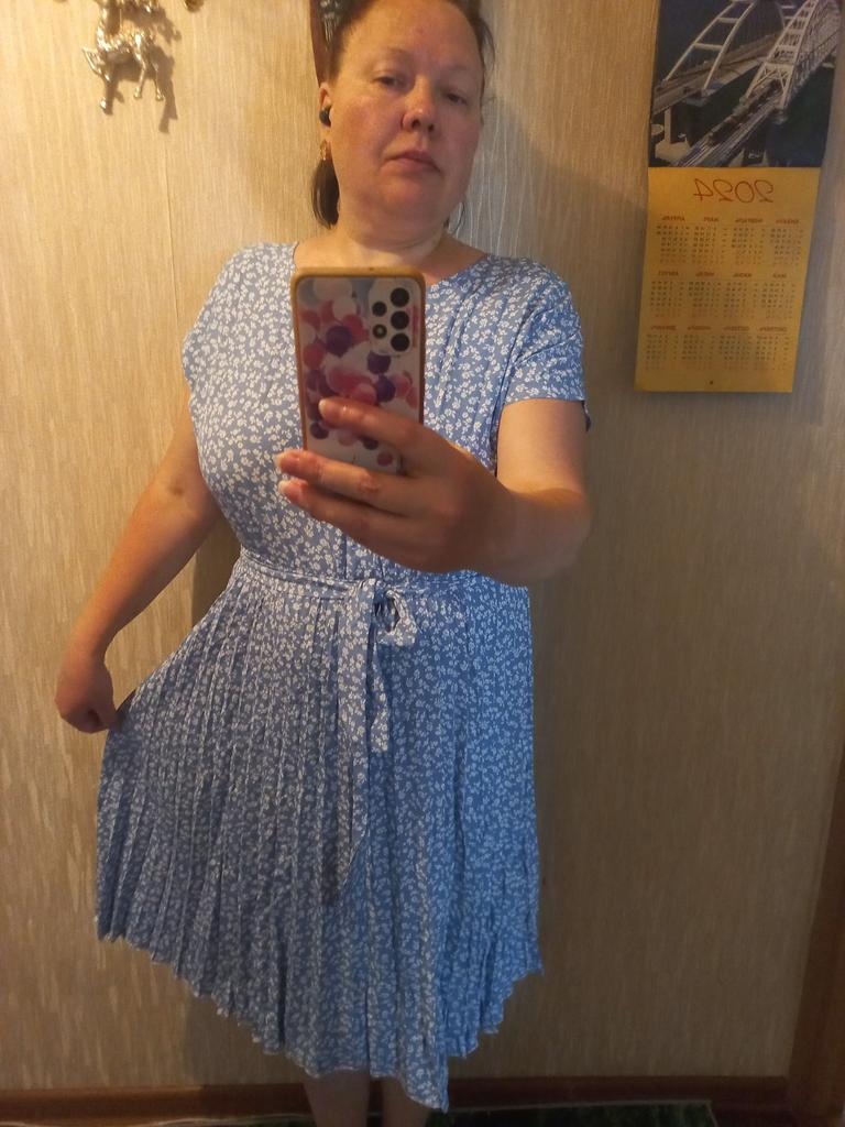 I bought size XXXL, just right. When choosing, I was guided by the size of the bust, just right. The dress is bright and comfortable, just like in the photo. Thank you.