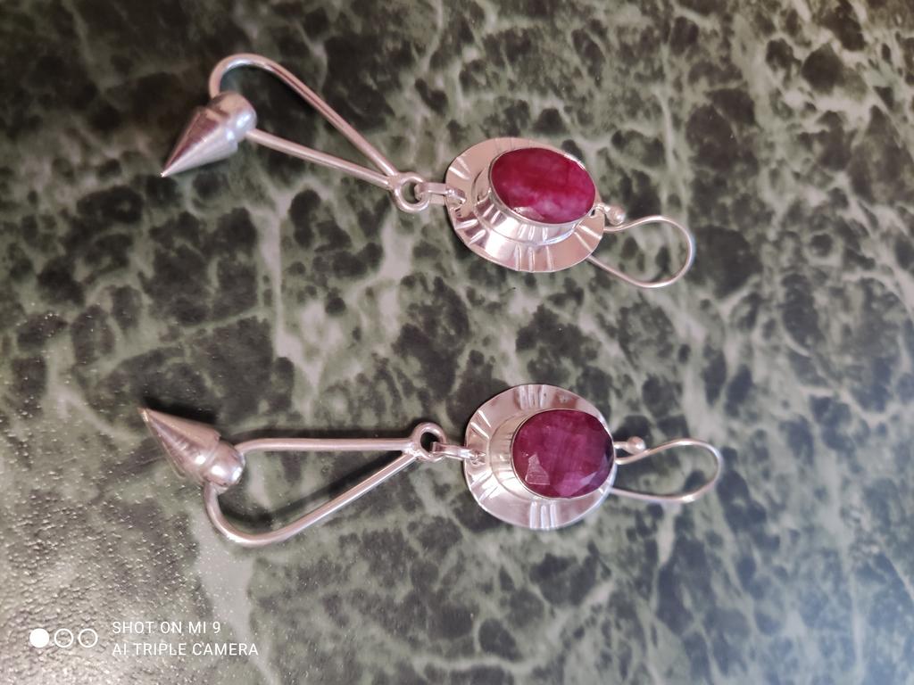 Kashmir Ruby Gemstone Earring, Ruby Silver Earring, Oval Gemstone Earring, 925 Sterling Silver Earring, Gemstone Earring, Meditation Earring