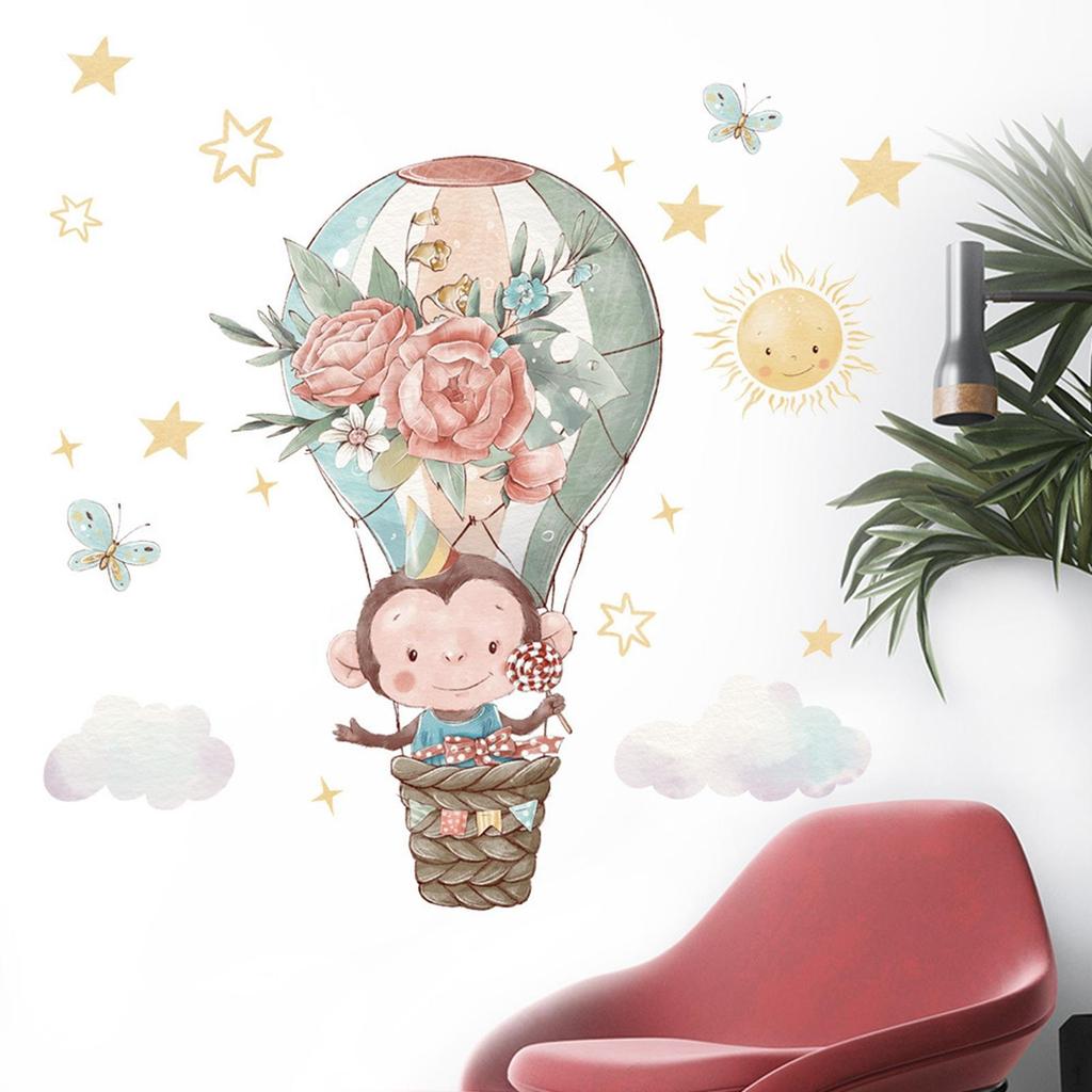 - 【Cute Design】: Hot Air Balloon Wall Sticker is decorated with flowers, hot air balloons, monkeys, butterflies, clouds, and star patterns, rich in color, cute and vivid, creative and interesting.