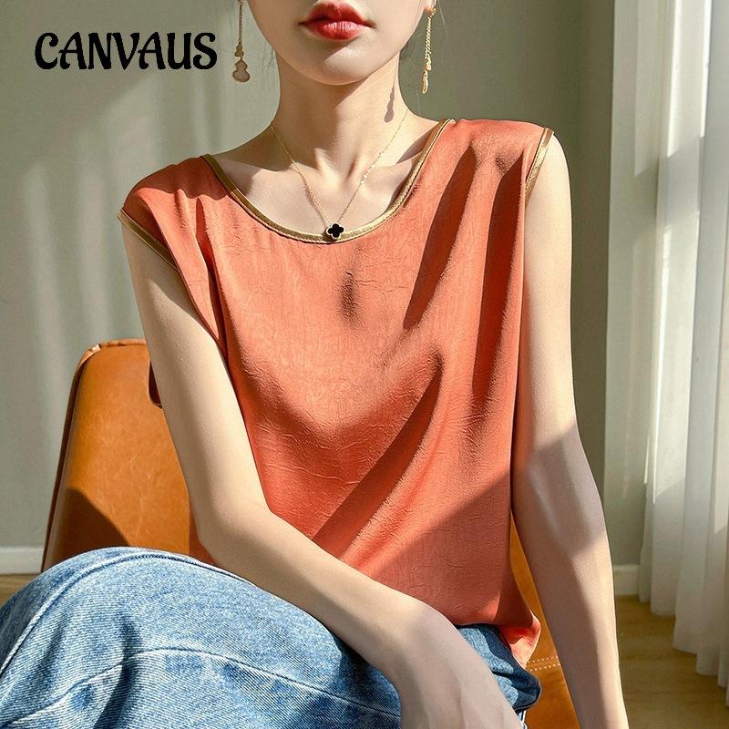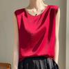 Summer Women's Vest Silk Round Neck Sleeveless Solid Top Vests