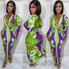 Plus Size Striped Printed Long Sleeve Casual Sexy Dresses