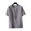 Style meets comfort with this men's short-sleeved T-shirt crafted from a blend of cotton and linen fabrics, ensuring a soft, breathable, and skin-friendly feel perfect for hot summer days.