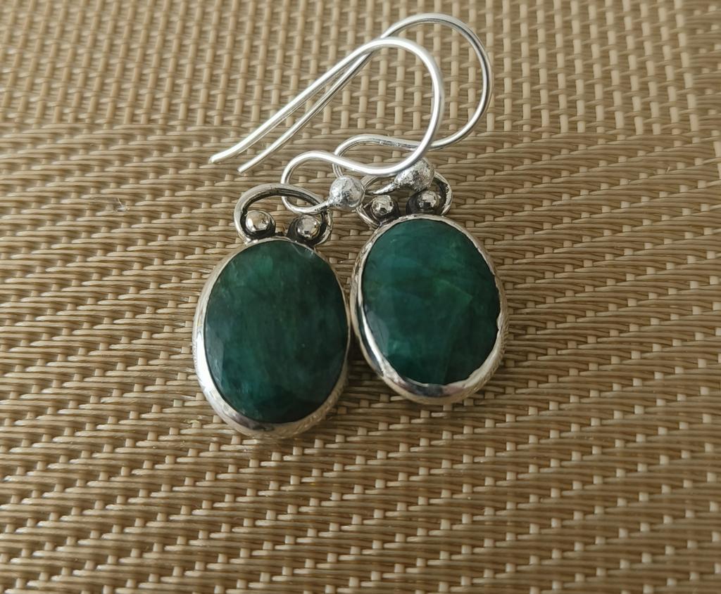 Emerald Gemstone Earring, Emerald 925 Sterling Silver Earring, Emerald Handmade Jewelry, Bohemian Earring, Gifts For Women, Women's Earring
