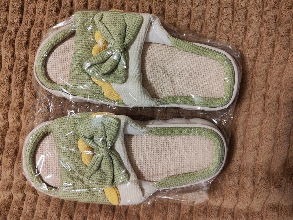 Linen Slippers Women Indoor Slippers Comzy Anti-Slip House Cotton Shoes Cute Bowknot Flat Slipper Couples Slides Spring Summer