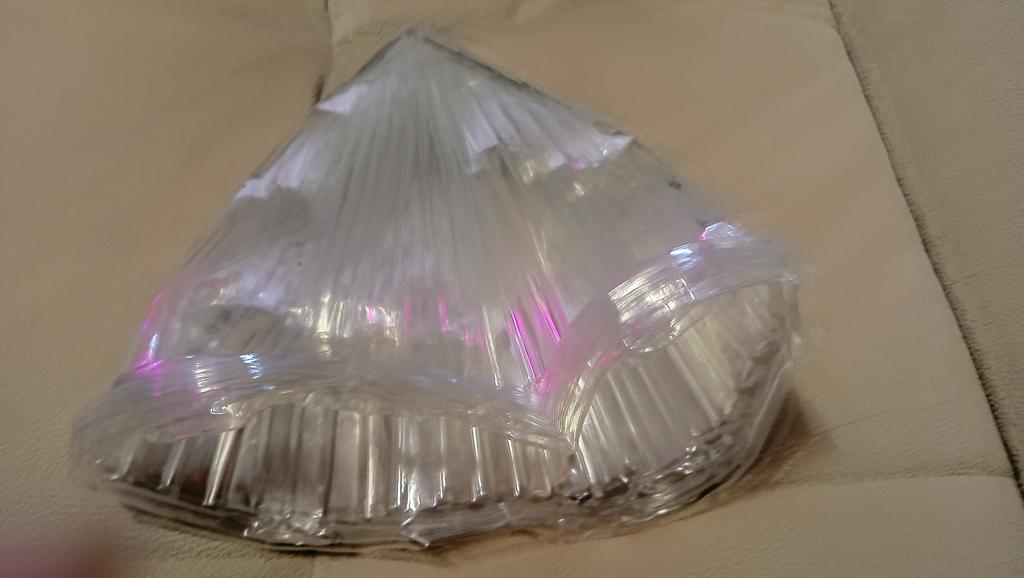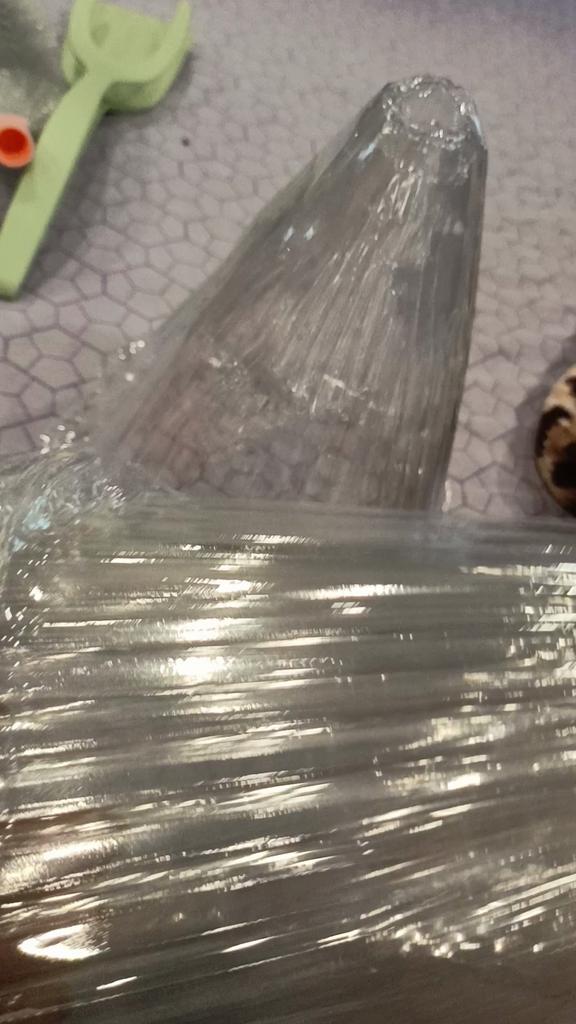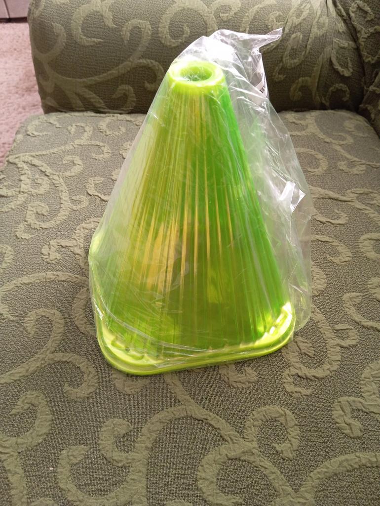 They packed it in a regular plastic bag. The cones arrived all crumpled and dented, as if someone had been jumping on them the whole way. It looked terrible.