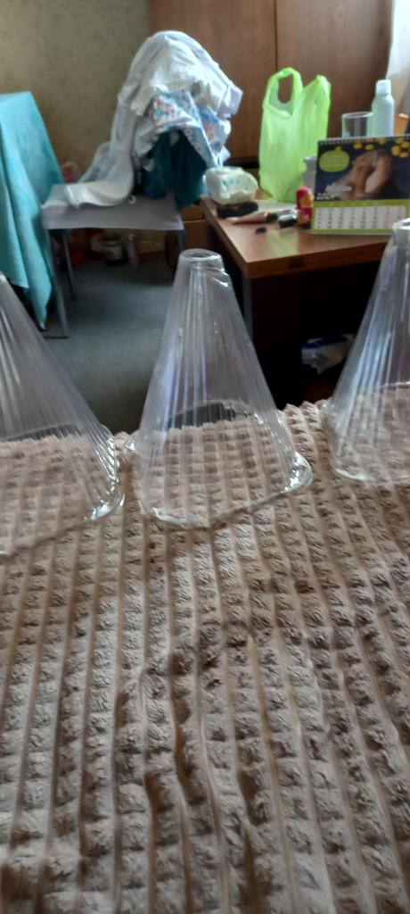 Small, thin cones. Smaller and thinner than five-liter bottles. They will fly away in the wind, you need to attach them