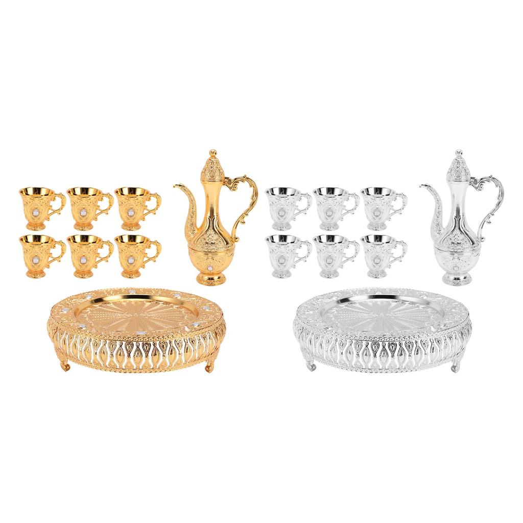 Vintage Wine Pot Set European Retro Coffee Pot Tray Kit Decorative Zinc Alloy Exquisite Carving Wine
