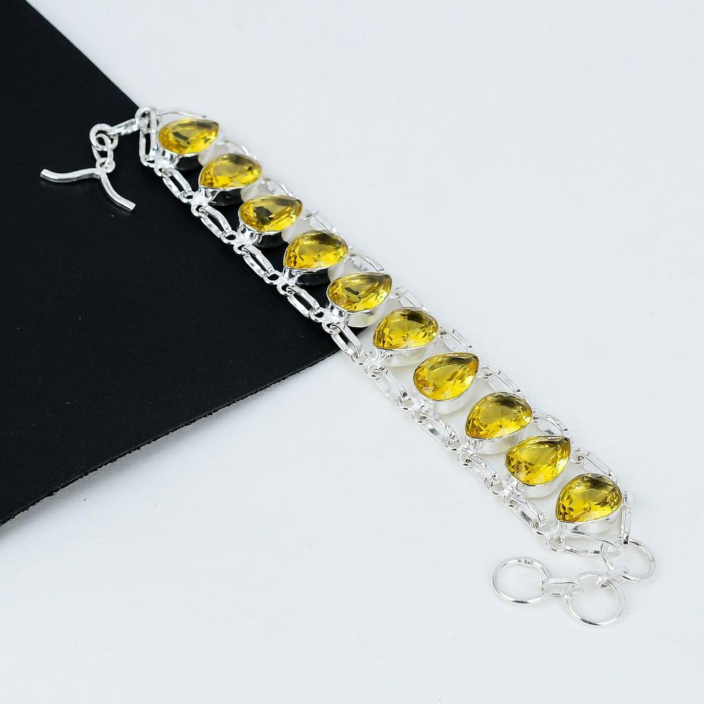 Citrine Bracelet Citrine Gemstone Handmade 925 Sterling Silver Bracelet Yellow Citrine Bracelet For Gift Bohemian Unisex Bracelet For Her