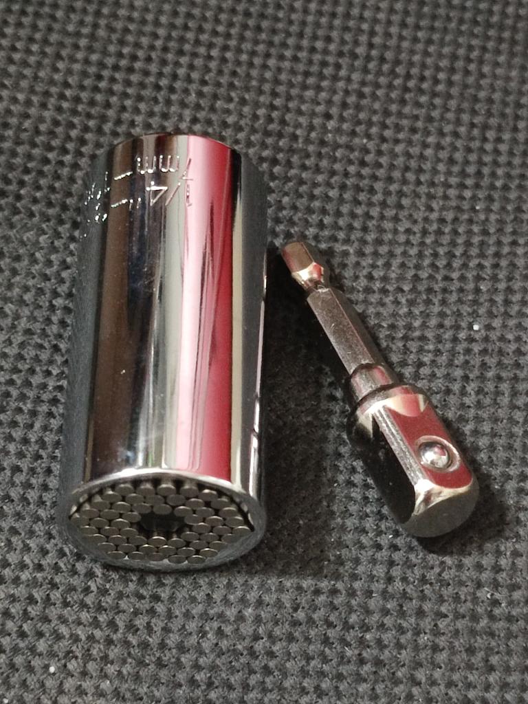 Metric 7-19mm Socket 3/8" Hex Shank Post 1/4"-3/4" Silver Ratchet Socket Universal Socket Tool with Electric Drill Adapter (Silver Socket + Post)
