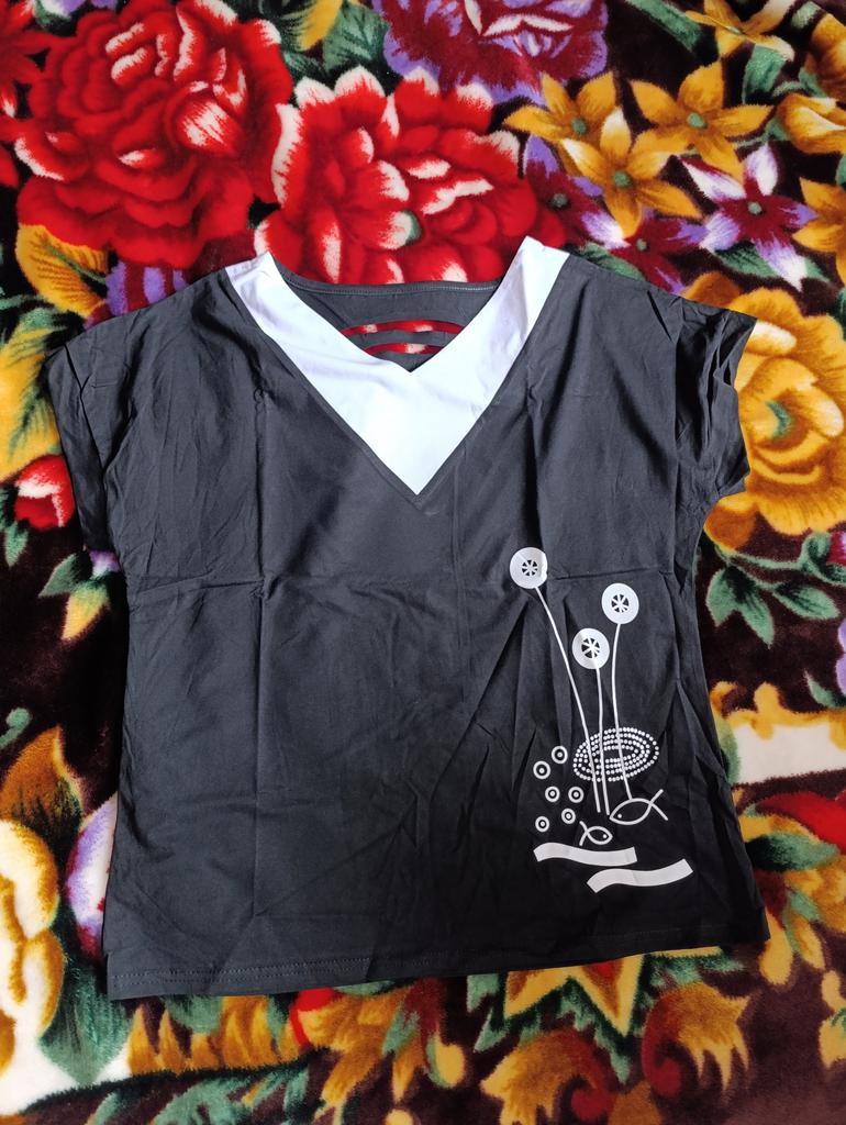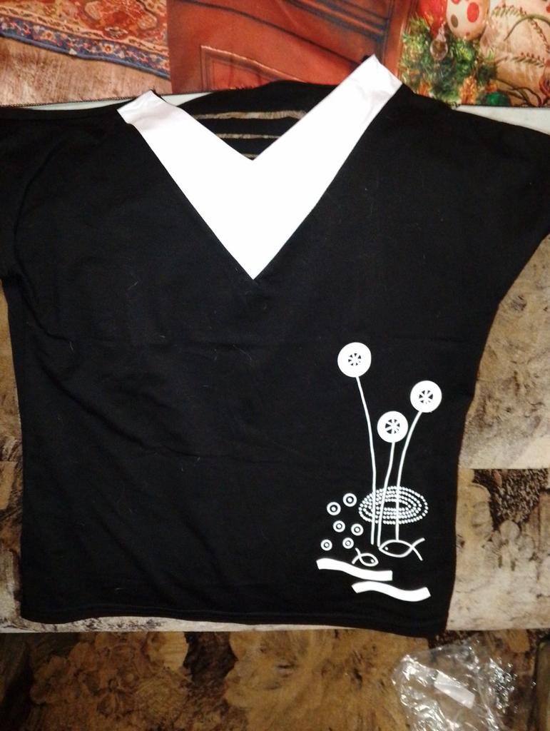 The T-shirt is cotton, matches the seller's photo, I was lucky, they sent 4xl just for me, 3xl would be small, because it doesn't stretch. The color is a little lighter than in the photo. I'm satisfied, I advise you to buy.