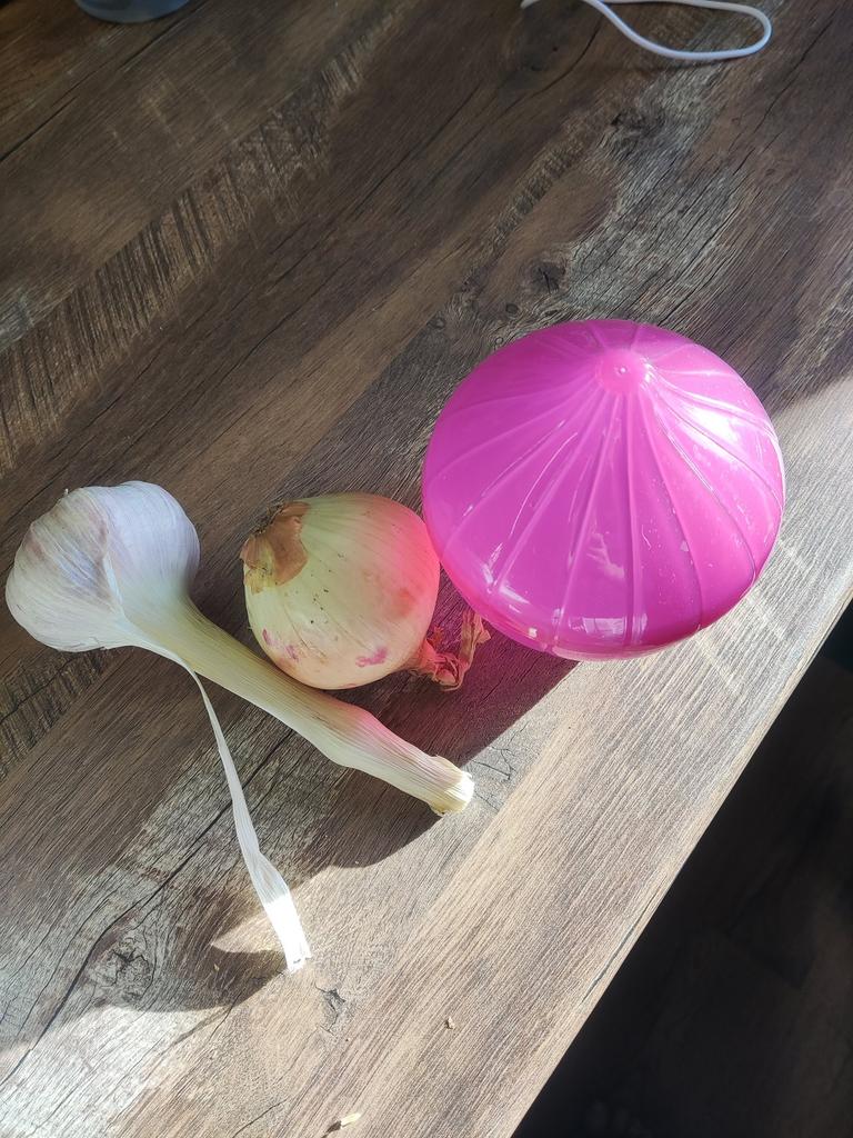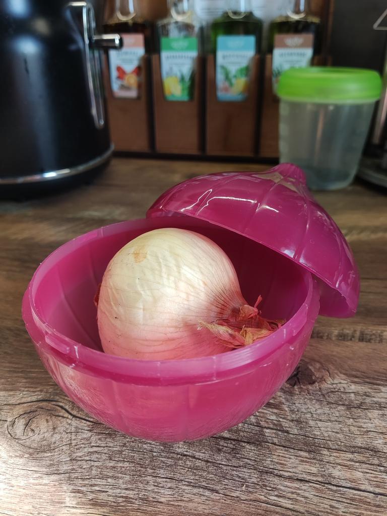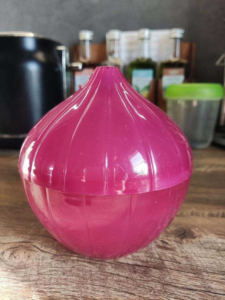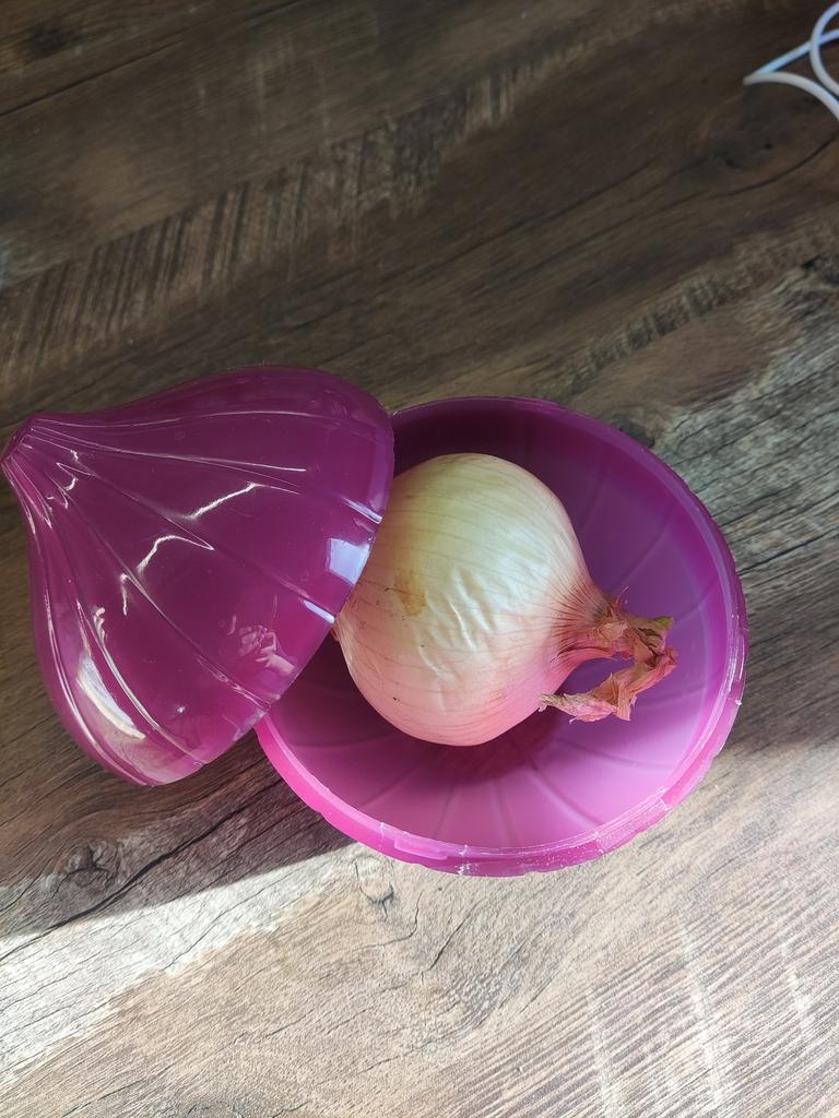 Plastic container for onions. A convenient and functional container in which onions and garlic are stored much longer (in the refrigerator or simply on the shelf), and also do not spread their aromas around, which is not always desirable. The size of the container allows you to store even the largest onions in it, it is hermetically sealed with a rotary mechanism and is easy to wash by hand or in the dishwasher.