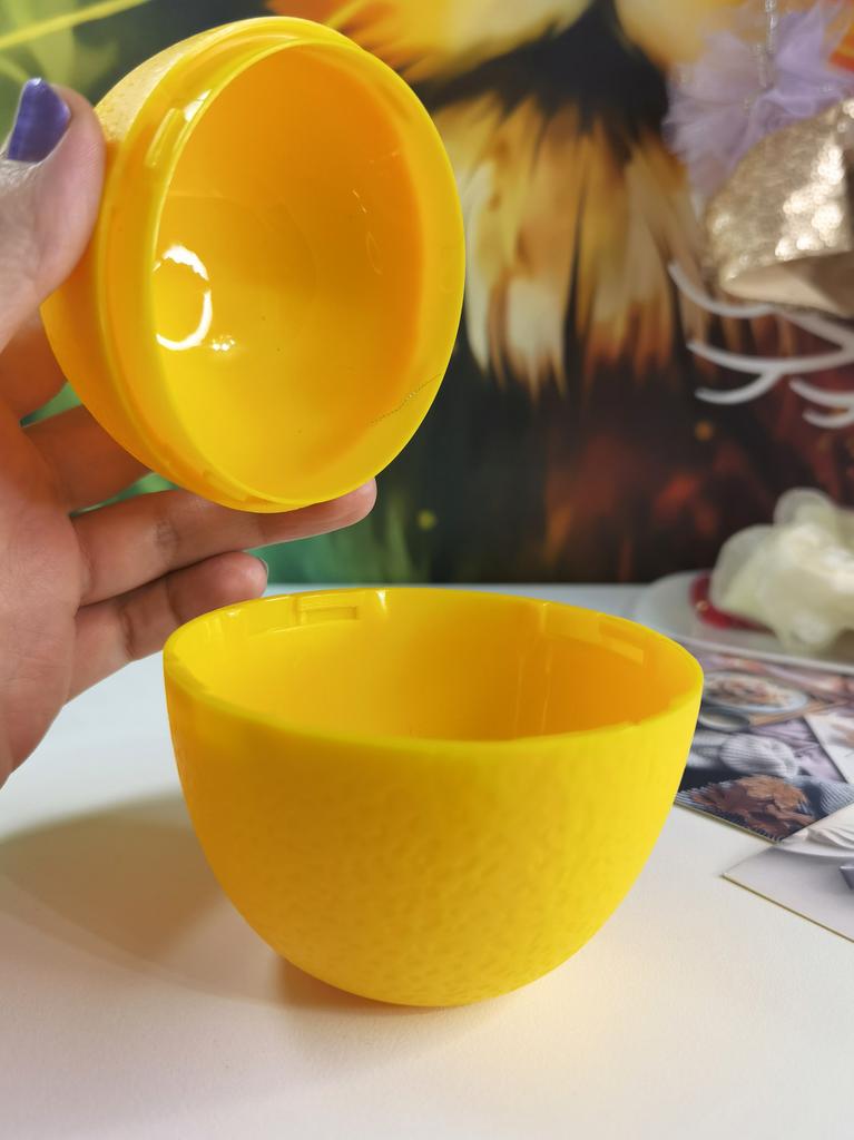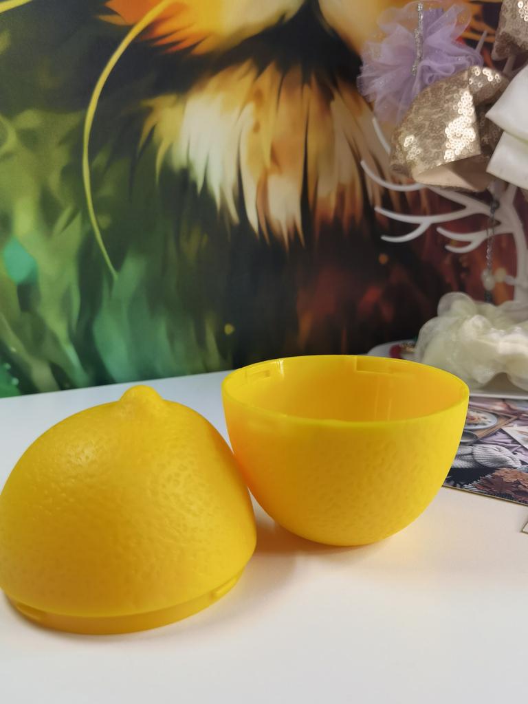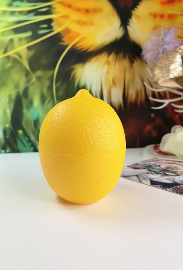 Lemon container Comfortable, large Holds a large lemon You can put the lemon in whole or cover it with half of the container. Without smell It closes with a lock, but it doesn't hold well for me, it opens The plastic is thick and strong There are also themed containers for other products to choose from.