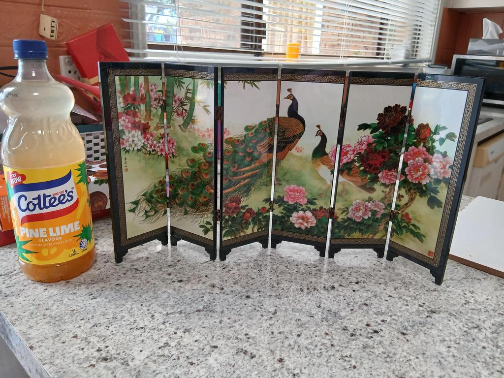 Wooden 6-Panel Peacock Screen Room Divider Folding Partition Gift Desktop Decor