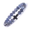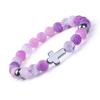 Natural Stone Cross Bracelets Colorful Weathering Agate Cross Elastic Rope Bracelet For Men Women Charm Yoga Jewelry