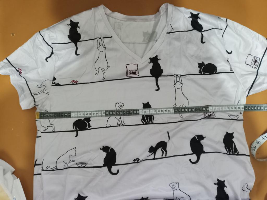 Women Top Cat Printed T-shirts Women's Oversized Clothes Tees Summer V-Neck Tops Shirt Original Design Cute Animal T-Shirts