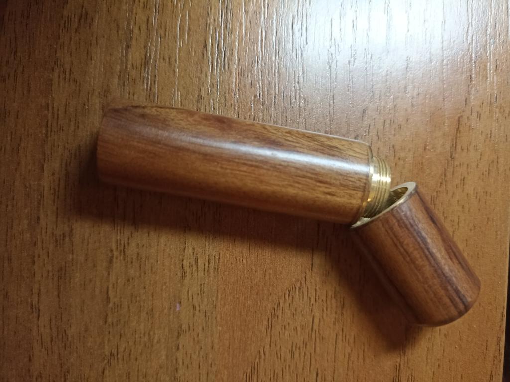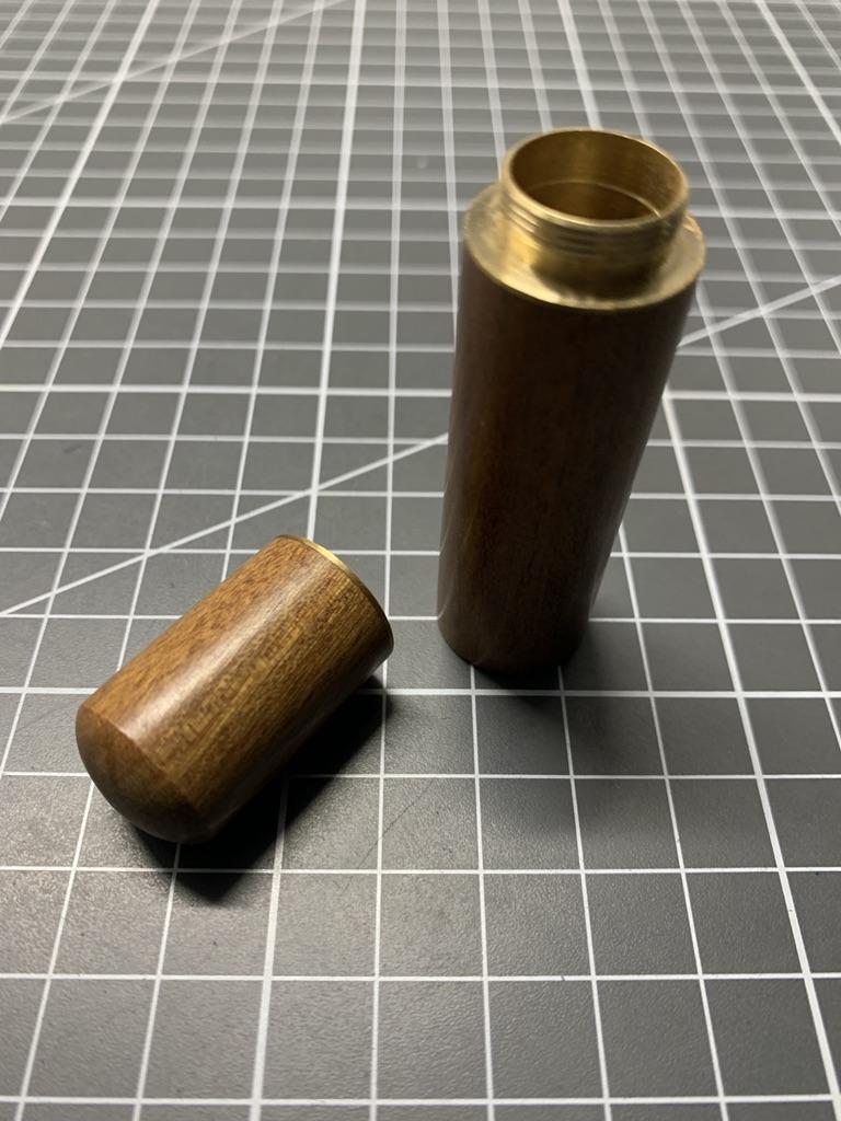 For a perfectionist, this choice will be so-so, the flask itself and the lid are from different cuts of wood, but it fulfills its purpose well, the lid screws on straight along the thread.