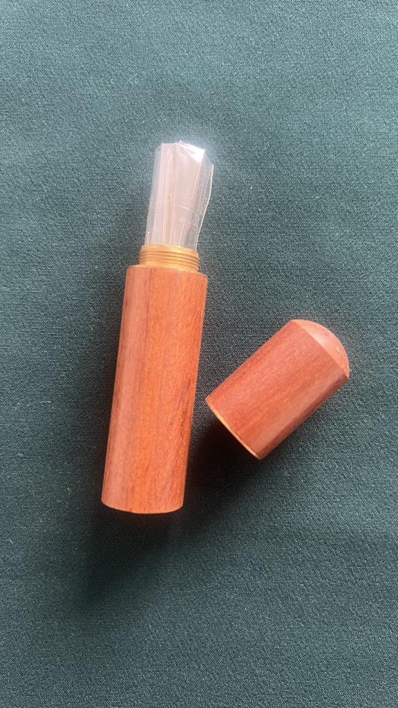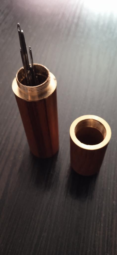 Very nice wooden case for storing your needles. This is already my second purchase. Nice well-functioning screw cap so that the tube closes properly. I'm happy with it.