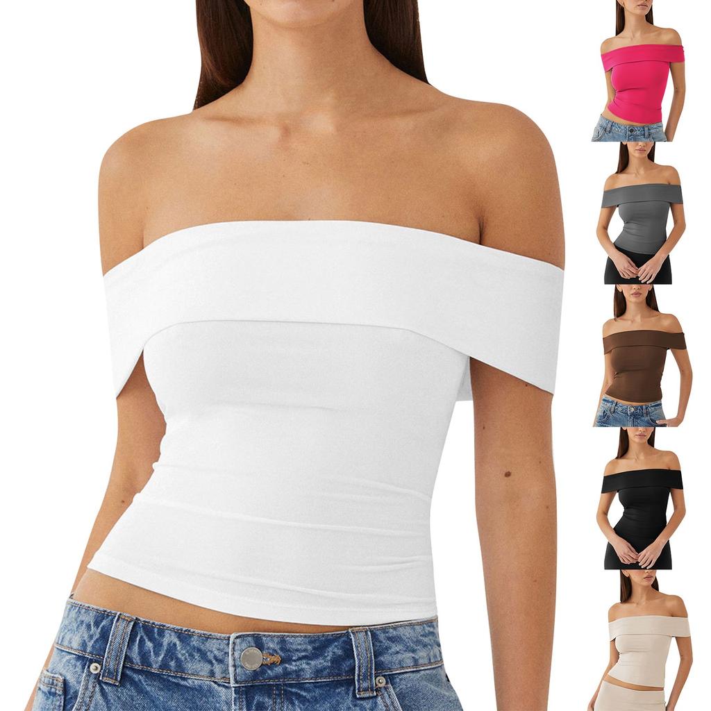 Women's New Summer Tube Top Sexy T-Shirt One Shoulder Hot Girl Top