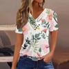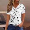 Women's T Shirt Tee Casual V-neck Short-sleeved T-shirt Printed Button Top