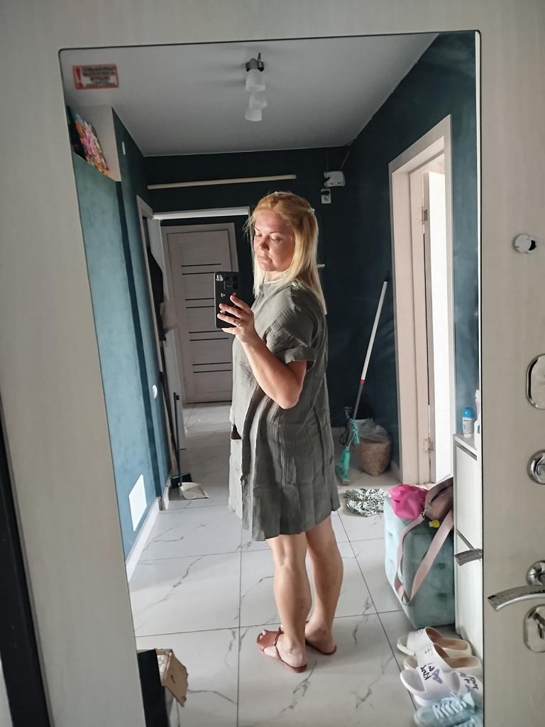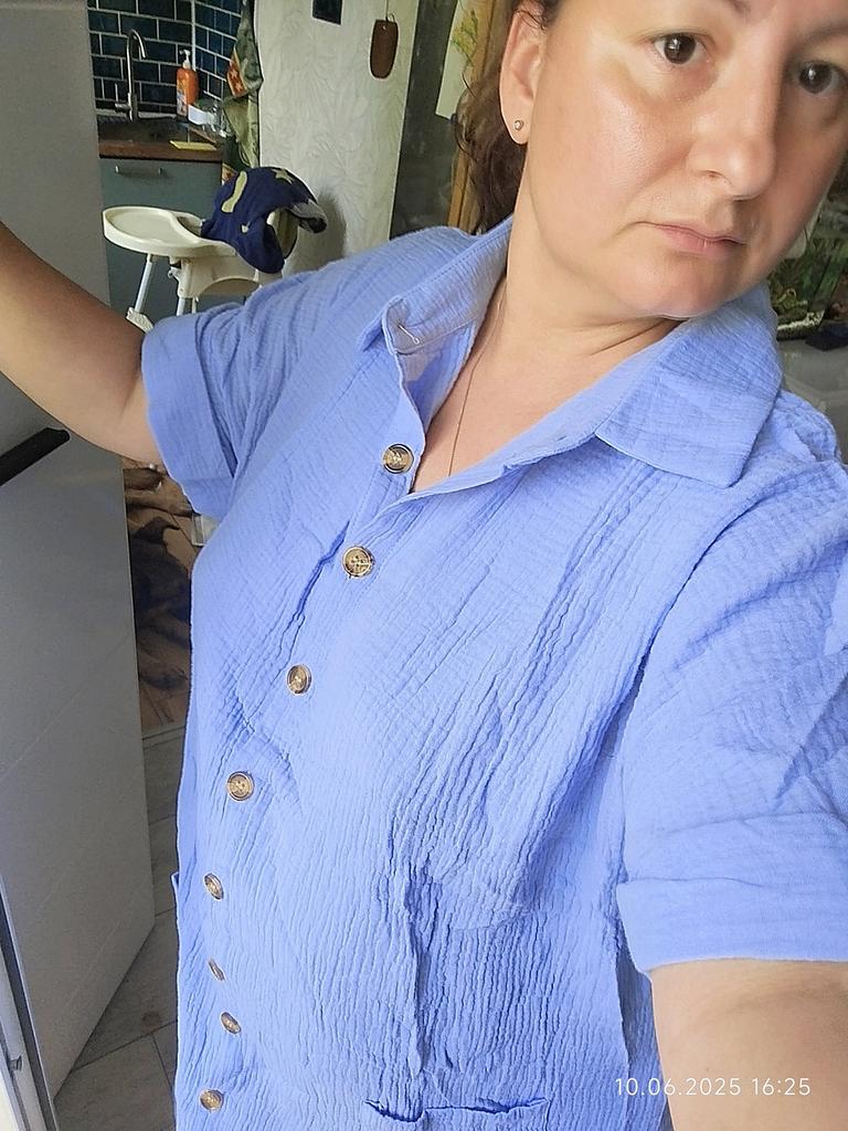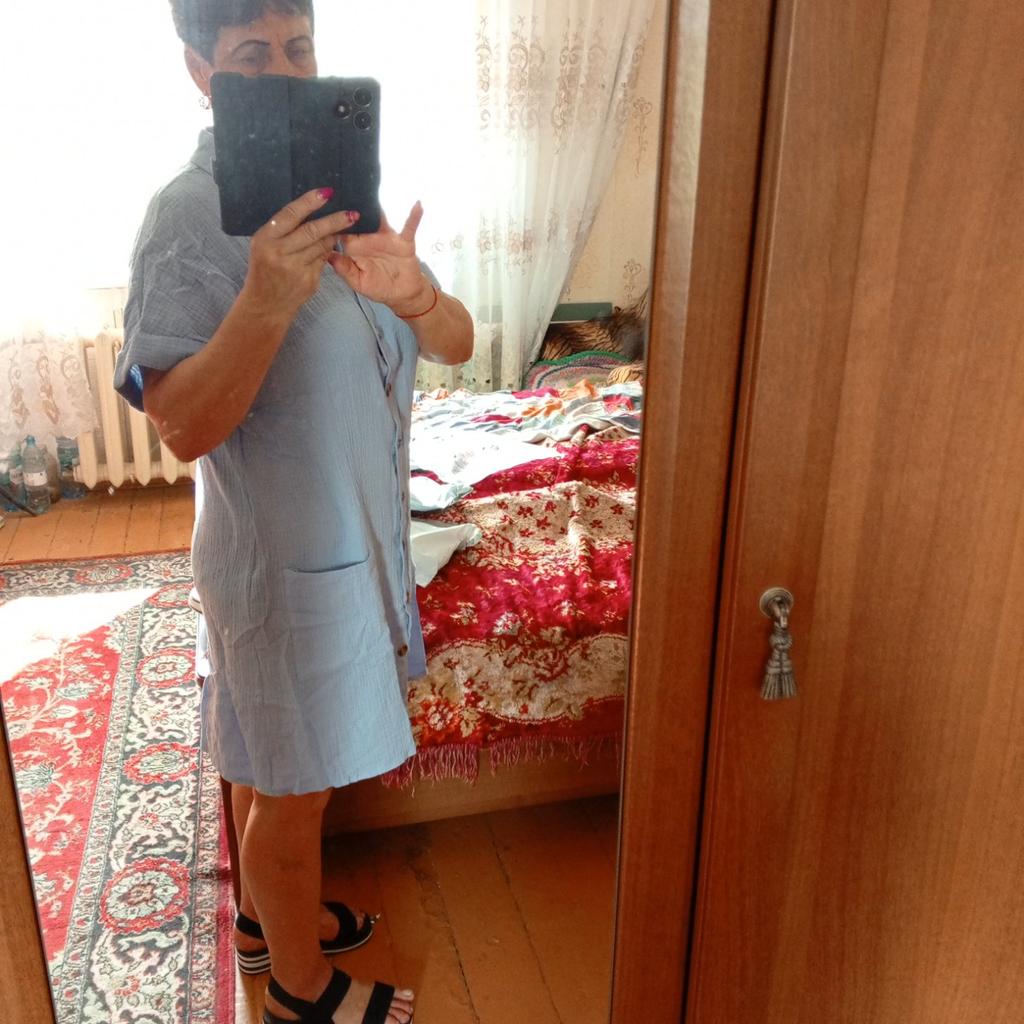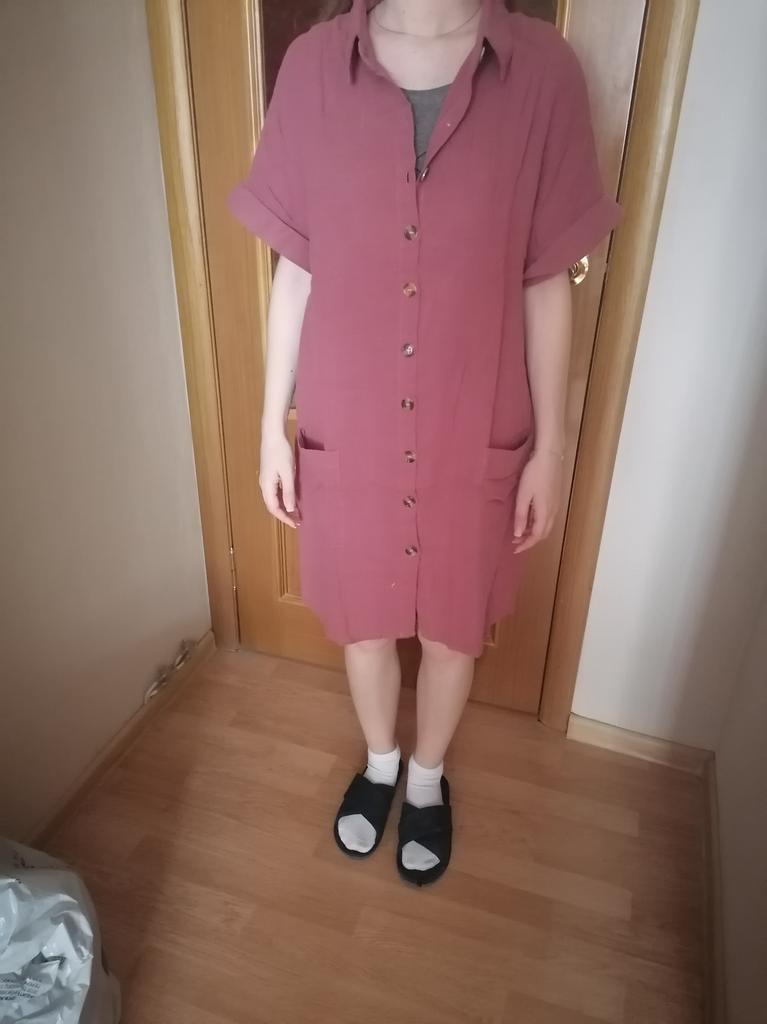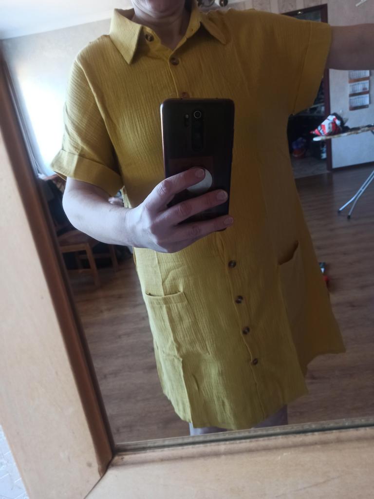 I wanted to buy myself a tunic for the summer, in the photo the fabric is thin, similar to gauze, I received a robe made of waffle fabric, from which waffle towels are sewn, the color is dirty yellow, the fabric is thick, the collar is very rough, complete disappointment, now I don’t know how to return it