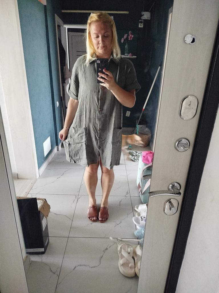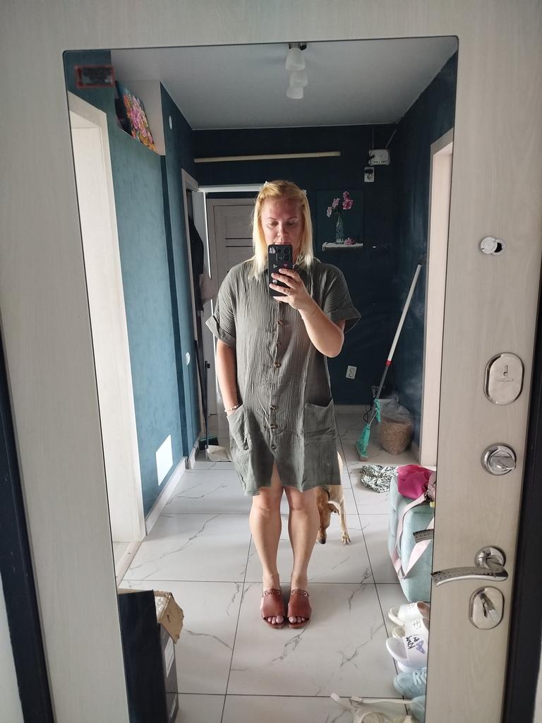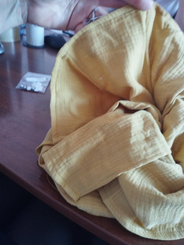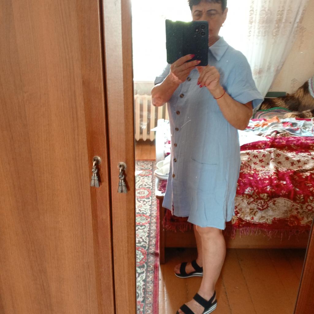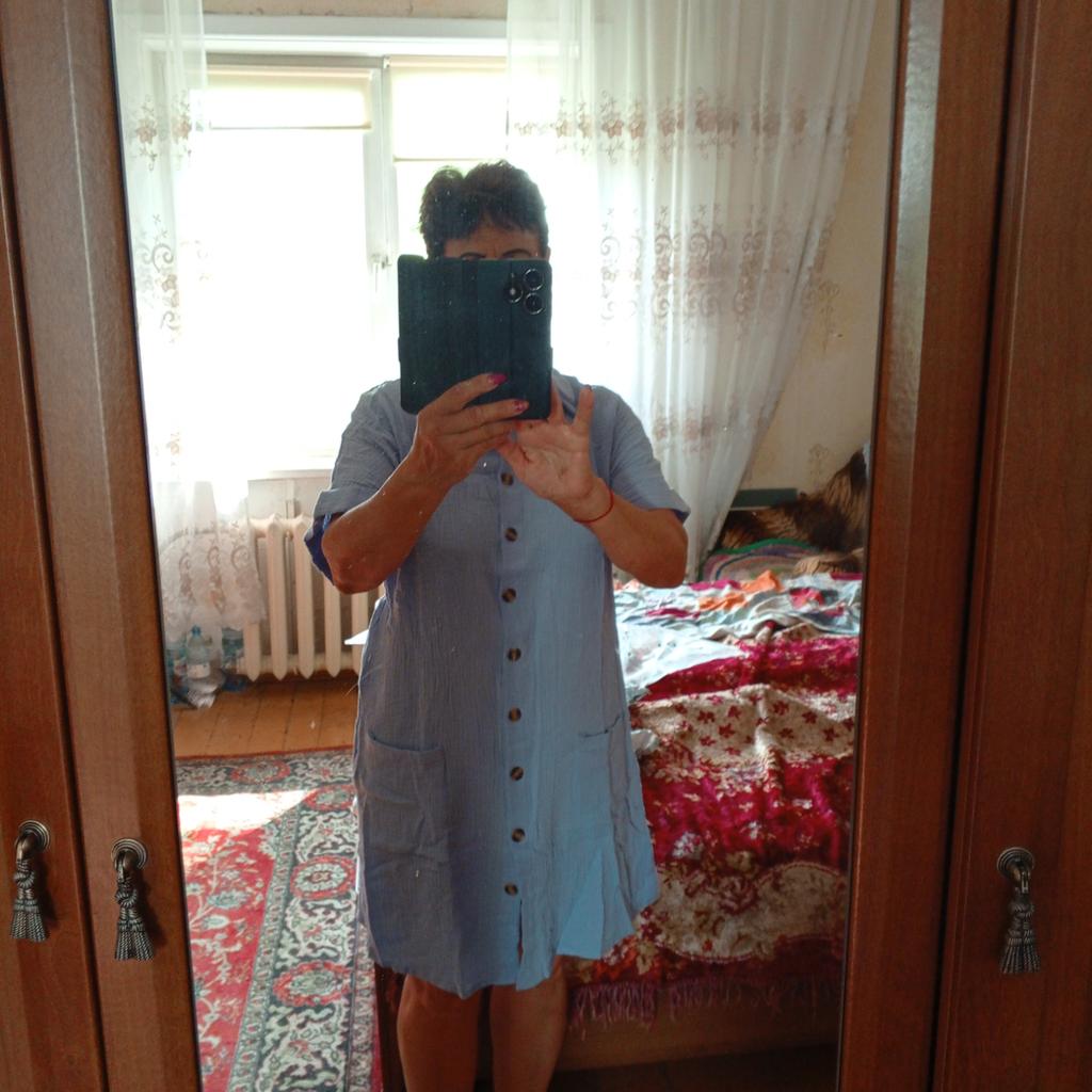 I wanted to buy myself a tunic for the summer, in the photo the fabric is thin, similar to gauze, I received a robe made of waffle fabric, from which waffle towels are sewn, the color is dirty yellow, the fabric is thick, the collar is very rough, complete disappointment, now I don’t know how to return it