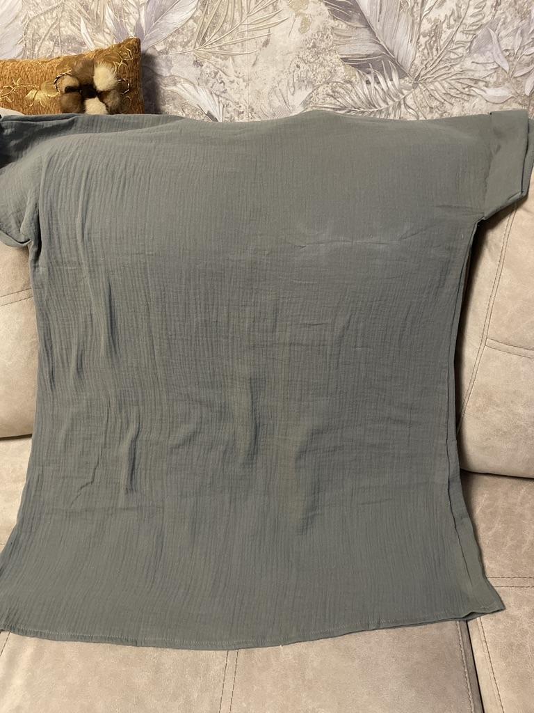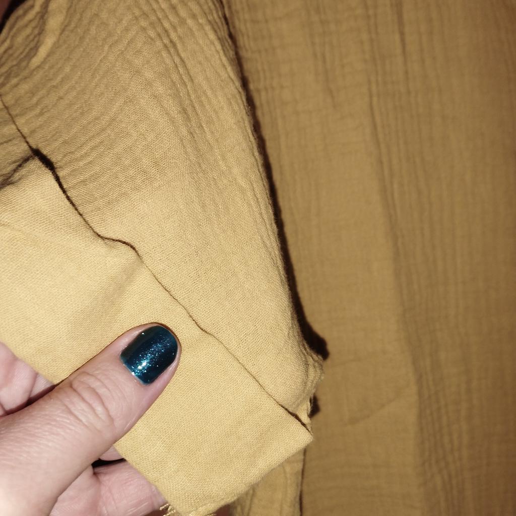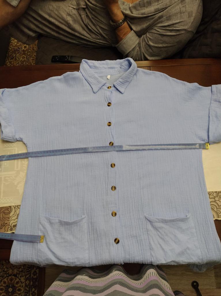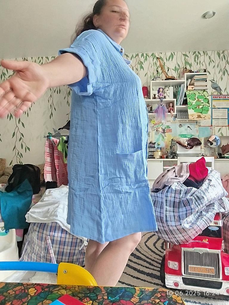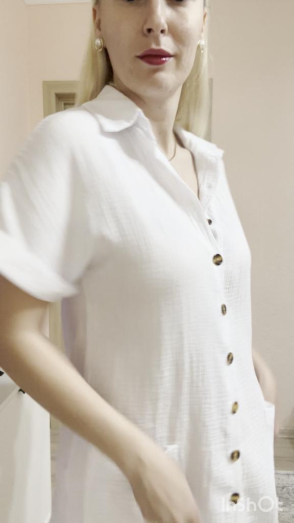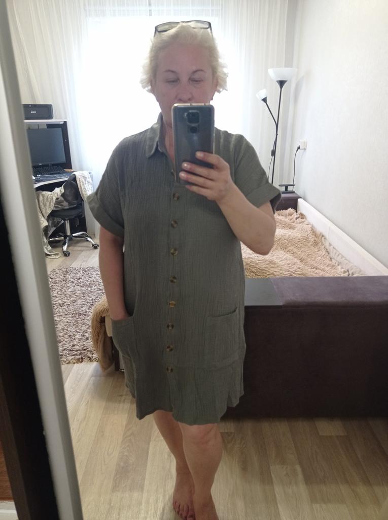 I wanted to buy myself a tunic for the summer, in the photo the fabric is thin, similar to gauze, I received a robe made of waffle fabric, from which waffle towels are sewn, the color is dirty yellow, the fabric is thick, the collar is very rough, complete disappointment, now I don’t know how to return it