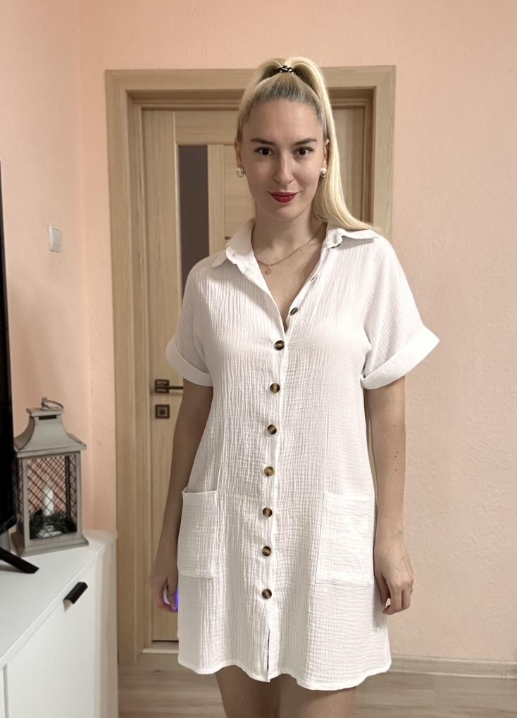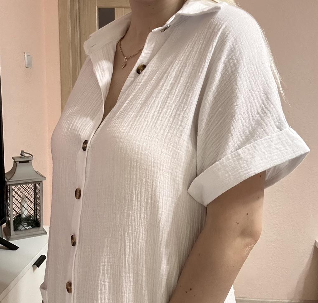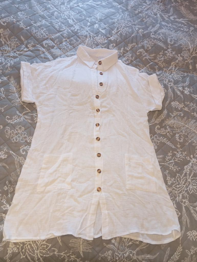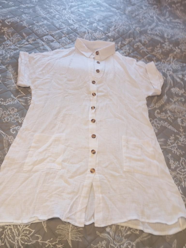 Excellent shirt dress. Will look good with a white blouse and white trousers. The fabric is simply fabulous - light, soft. Thank you
