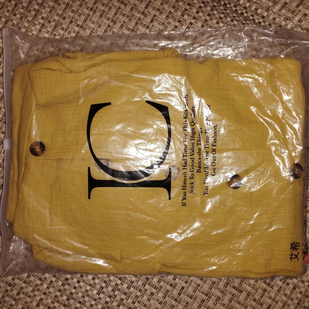 For size 50, XL fit very well. The mustard color is very beautiful. Perfect for hot weather. Lightweight fabric. Not see-through.