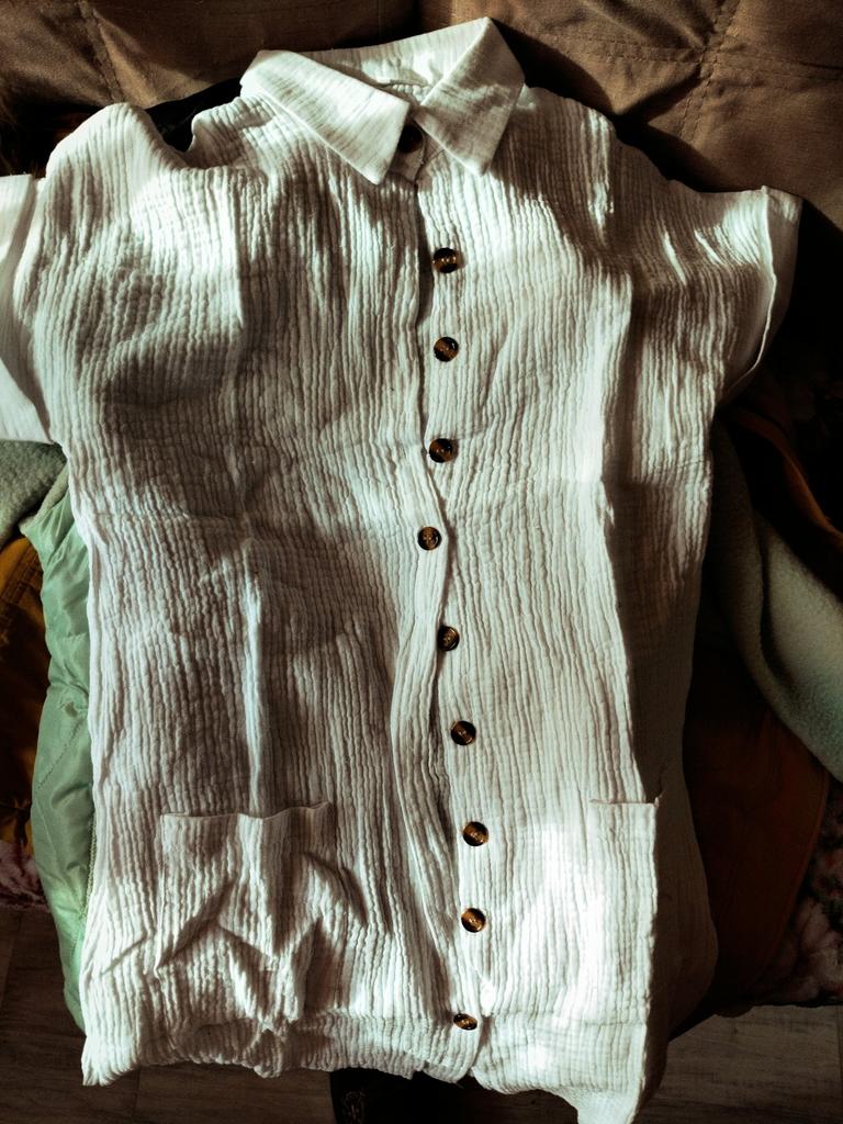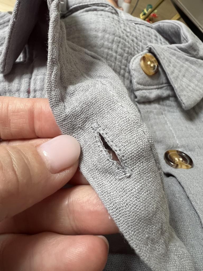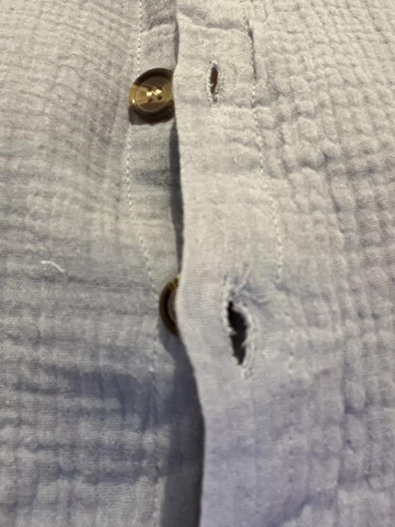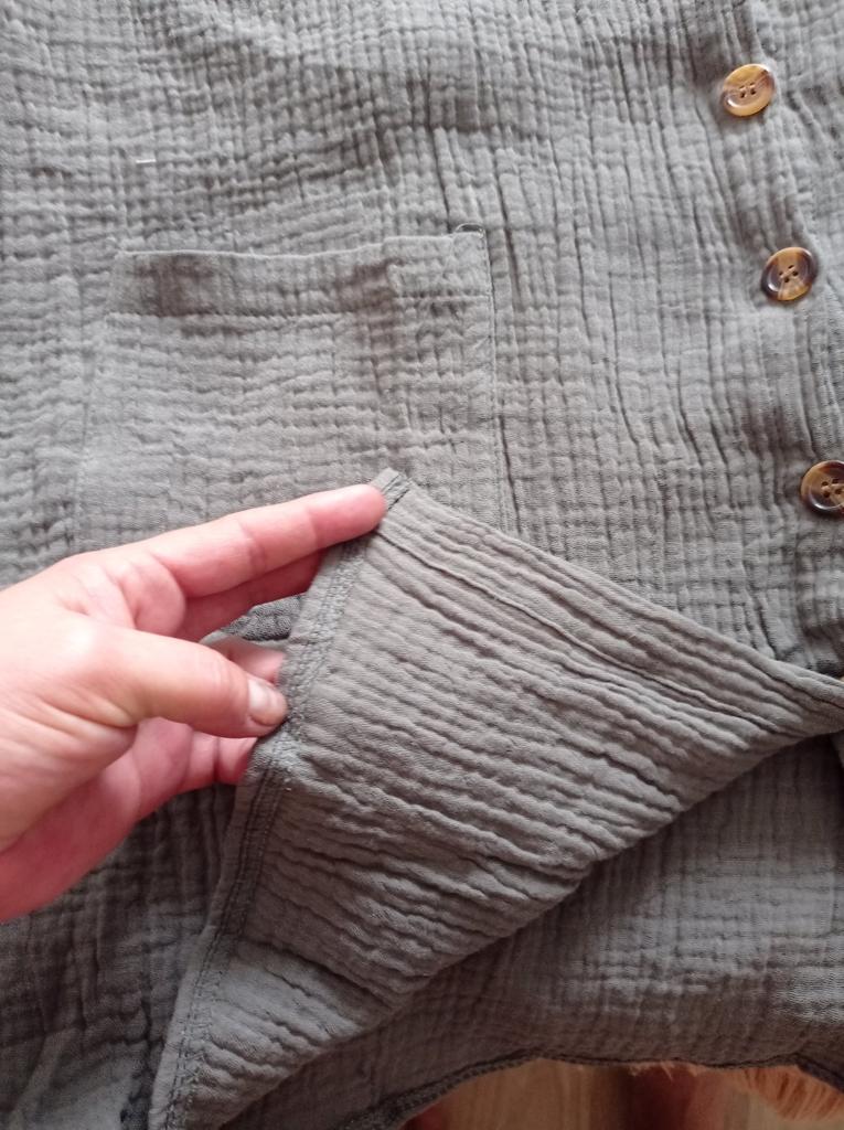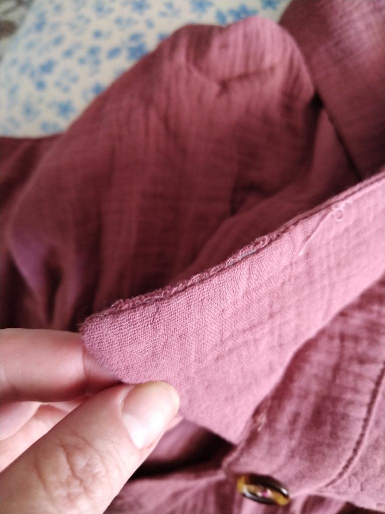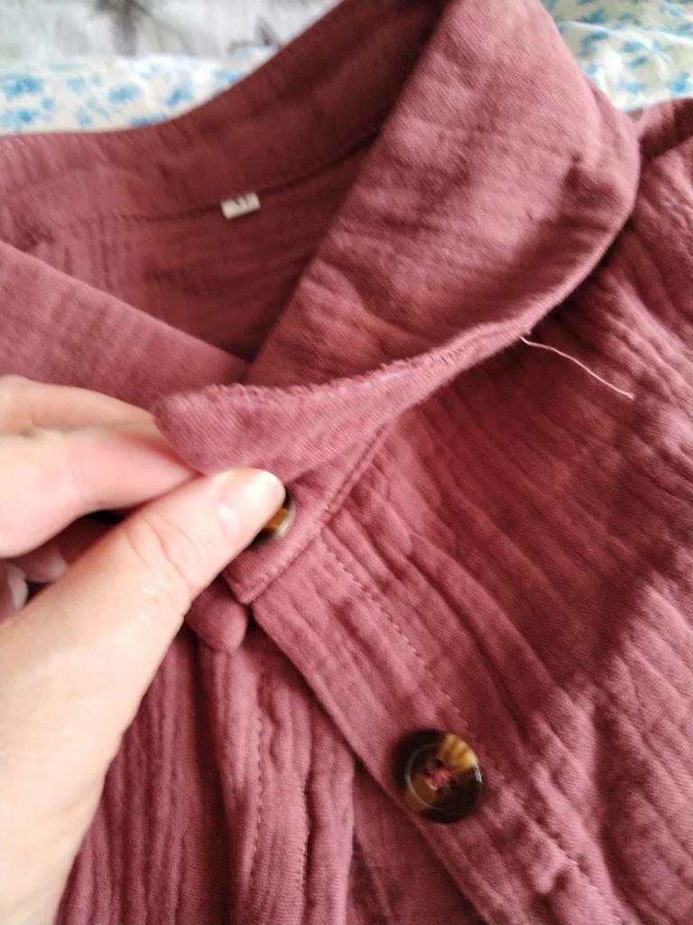 The sewing is a C grade, the buttonholes are not cut. Everything is in threads, after washing it will be a T-shirt.