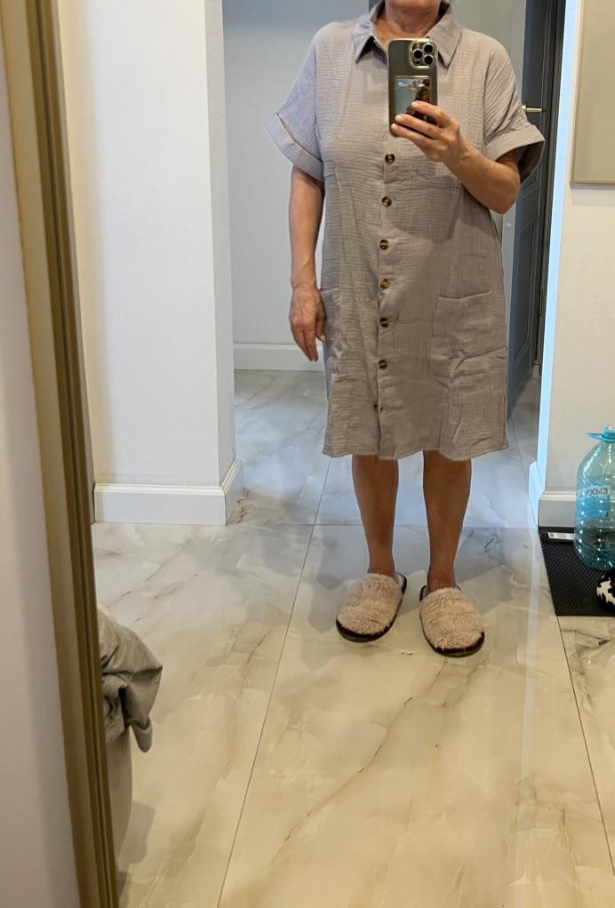 My order arrived today. I tried it on right away. Since sizes vary here, I bought an XL instead of a L. I think it looks like a nightie, a smock, or just a nice beach dress. As a dress 👗, it's probably not suitable for everyday wear. It looks much better in the pictures here, making it look more like a dress. The fabric is comfortable to wear, though.