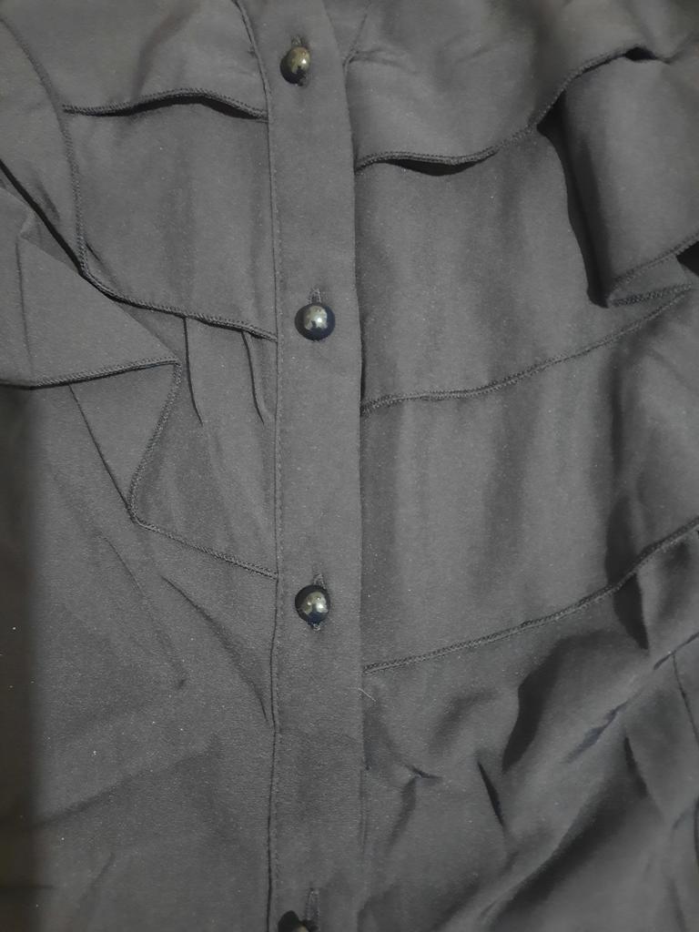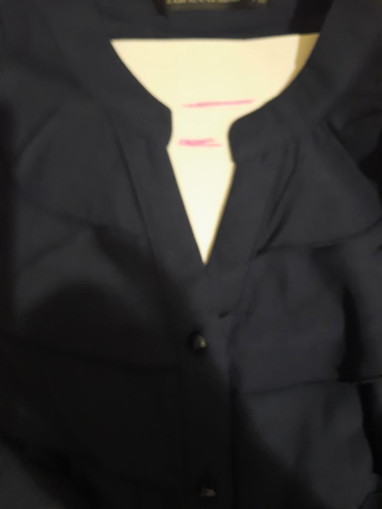 Amazing blouse. The fabric is nice. I really enjoy wearing it to work. The ruffles are just cute.